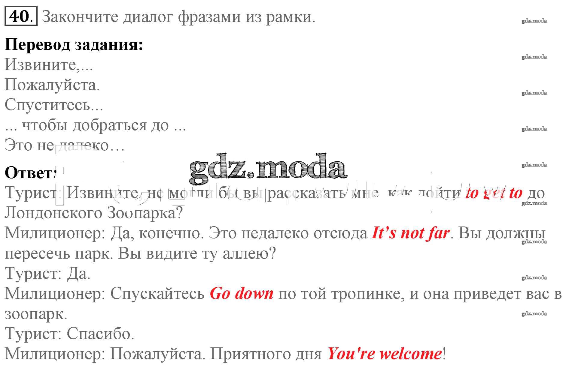 ОТВЕТ на задание № 40 Учебник по Английскому языку 5 класс Биболетова Enjoy English
