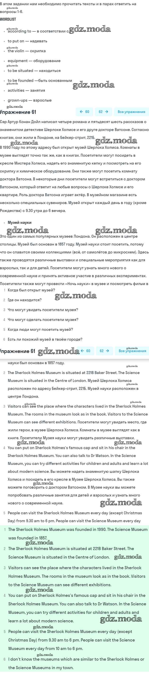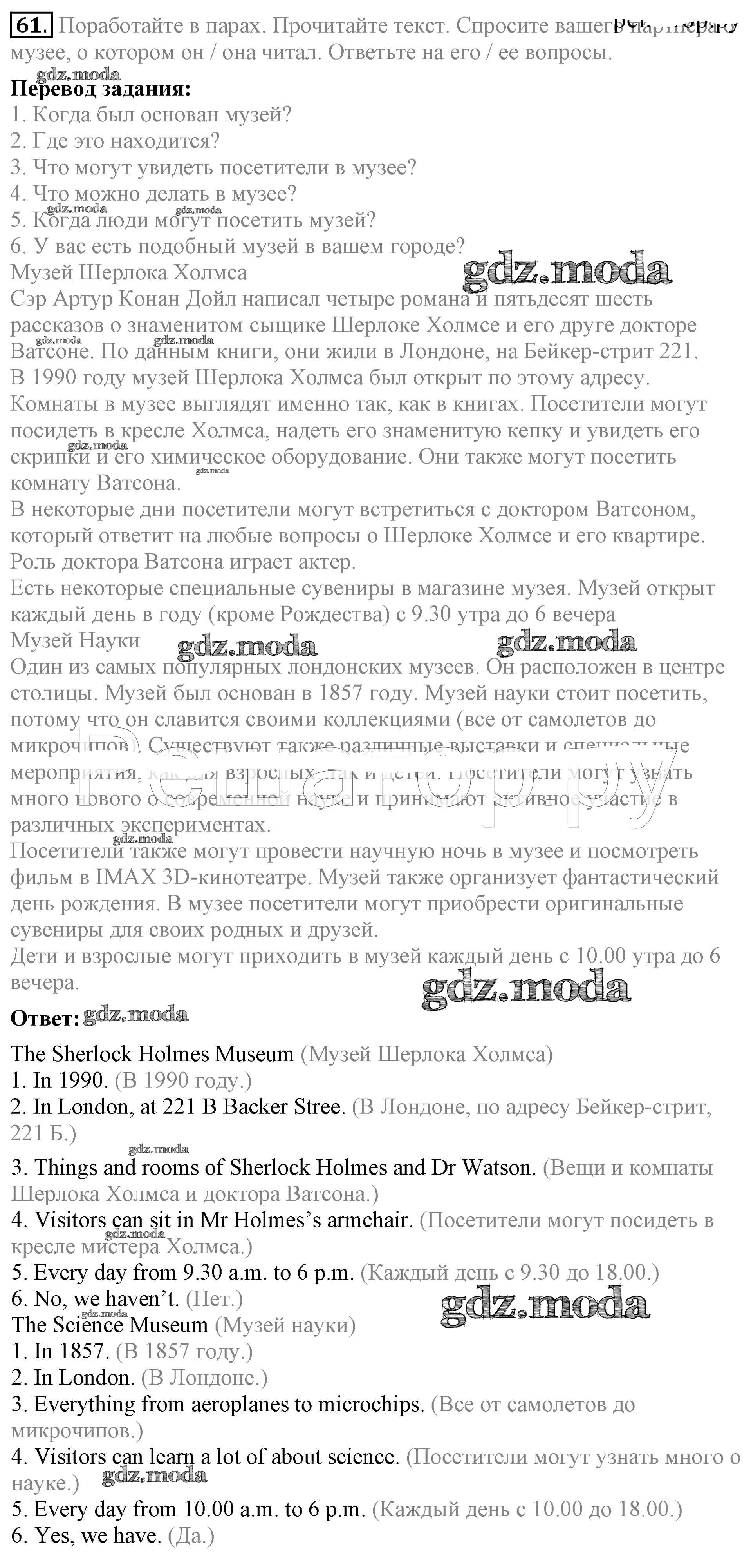 ОТВЕТ на задание № 61 Учебник по Английскому языку 5 класс Биболетова Enjoy English