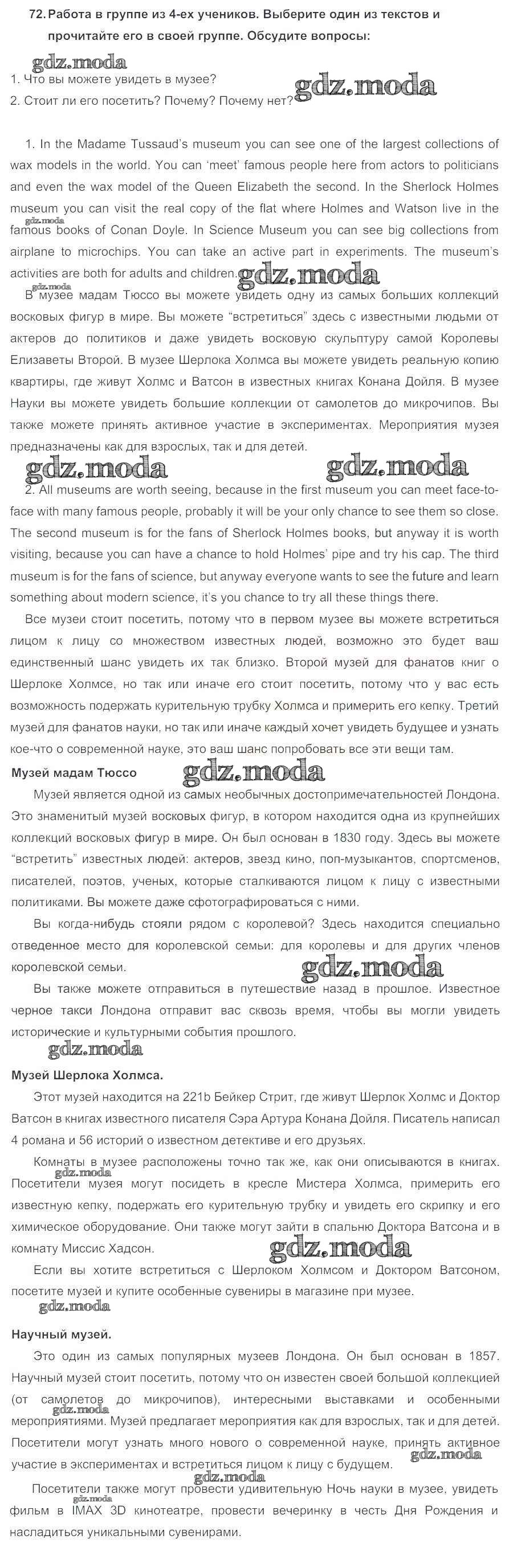 ОТВЕТ на задание № 72 Учебник по Английскому языку 5 класс Биболетова Enjoy English