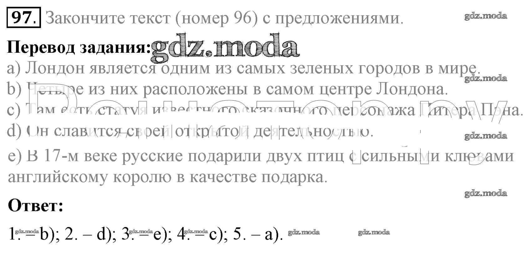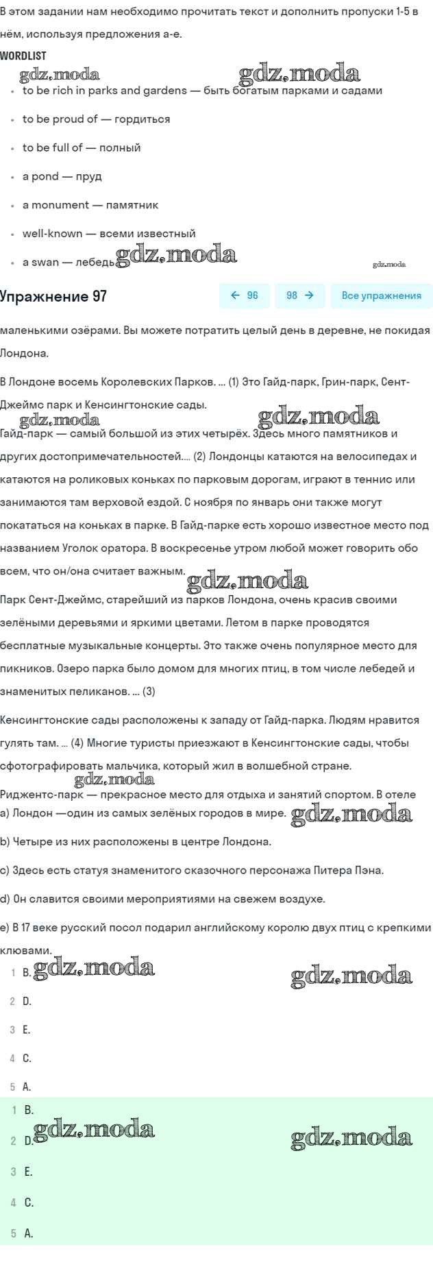 ОТВЕТ на задание № 97 Учебник по Английскому языку 5 класс Биболетова Enjoy English