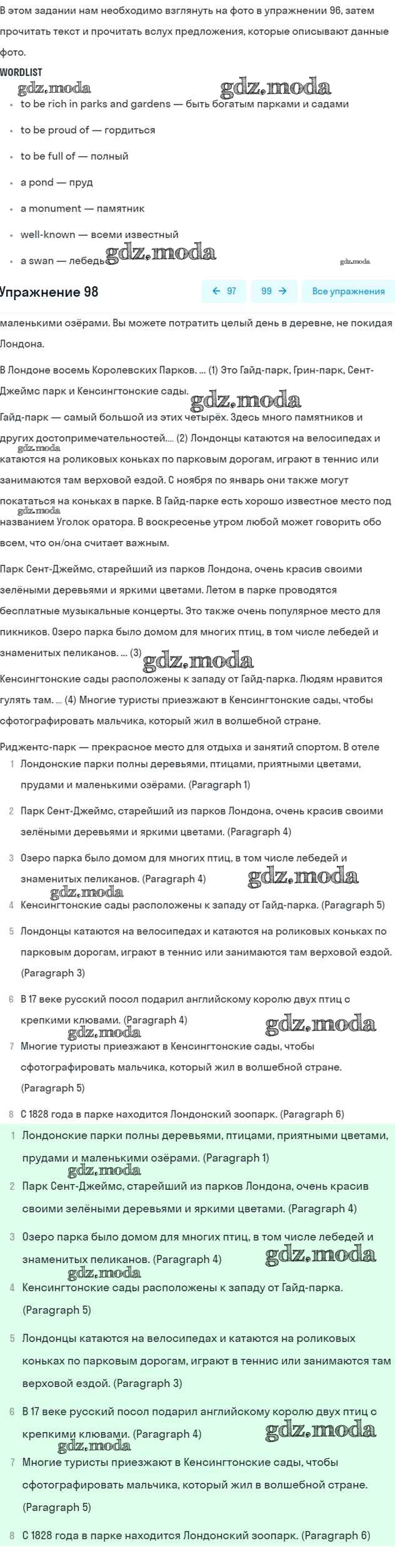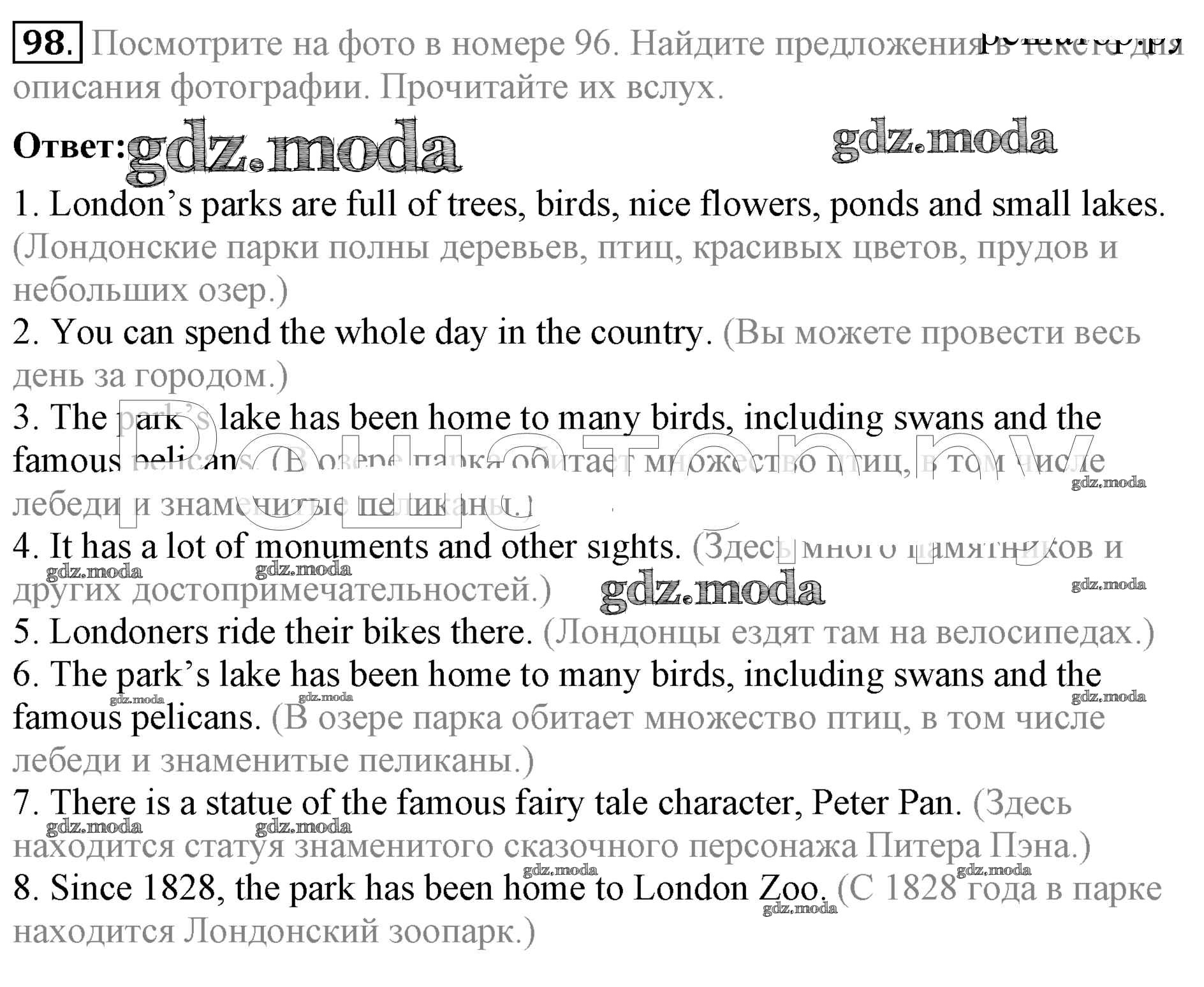 ОТВЕТ на задание № 98 Учебник по Английскому языку 5 класс Биболетова Enjoy English