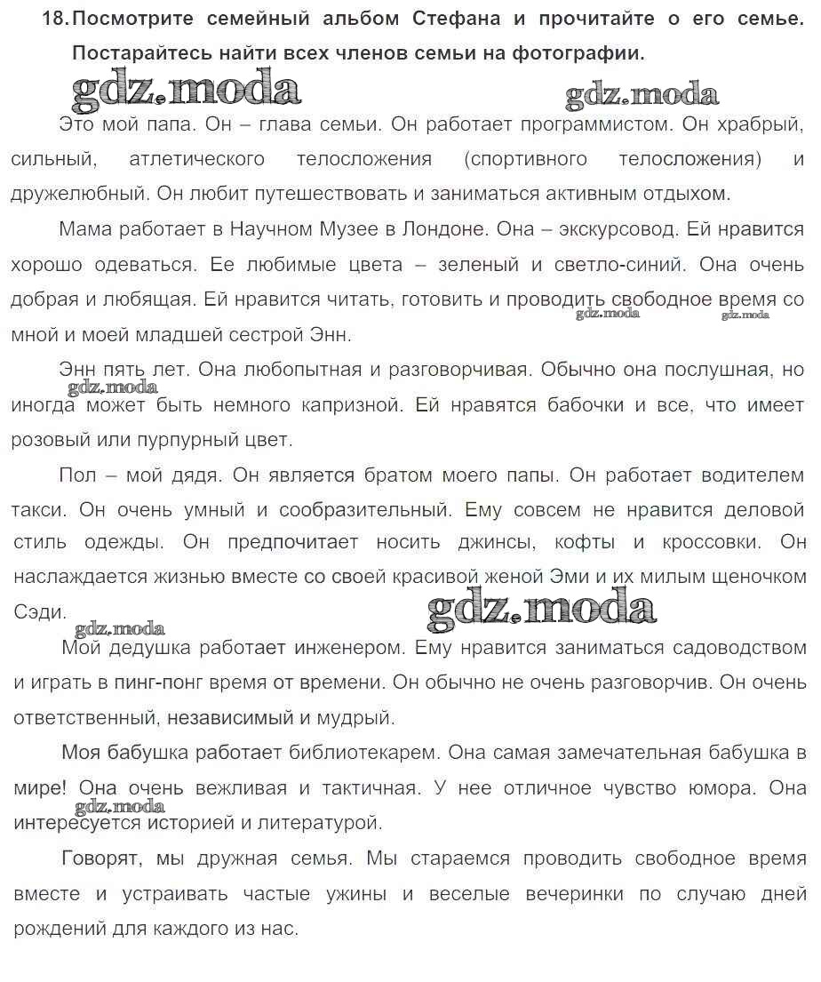 ОТВЕТ на задание № 18 Учебник по Английскому языку 5 класс Биболетова Enjoy English