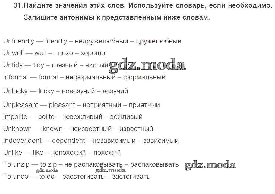 ОТВЕТ на задание № 31 Учебник по Английскому языку 5 класс Биболетова Enjoy English