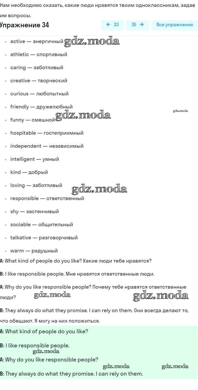 ОТВЕТ на задание № 34 Учебник по Английскому языку 5 класс Биболетова Enjoy English