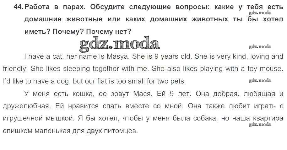 ОТВЕТ на задание № 44 Учебник по Английскому языку 5 класс Биболетова Enjoy English