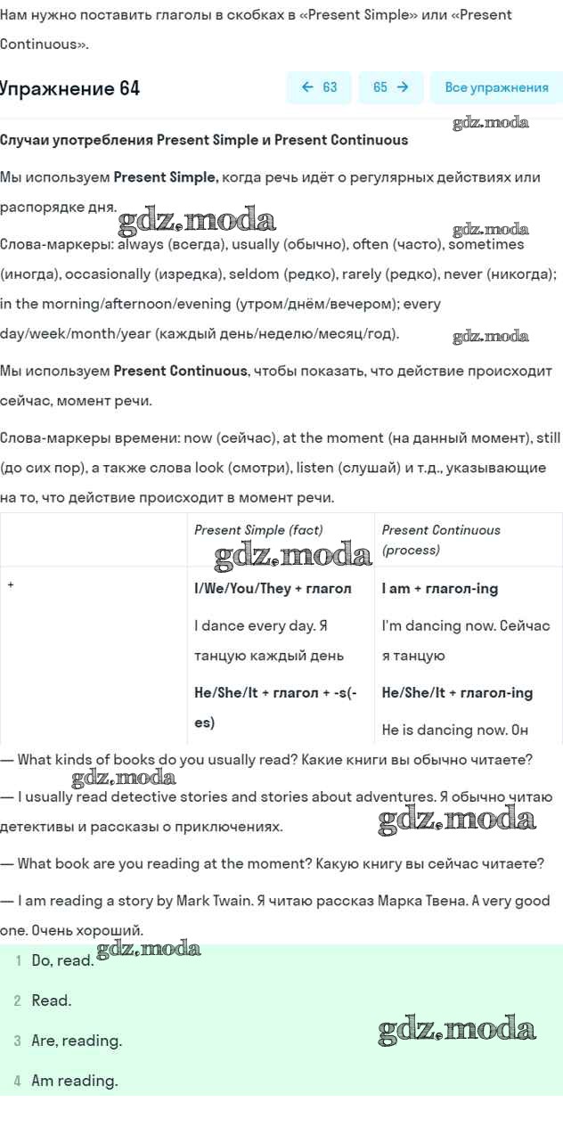 ОТВЕТ на задание № 64 Учебник по Английскому языку 5 класс Биболетова Enjoy English