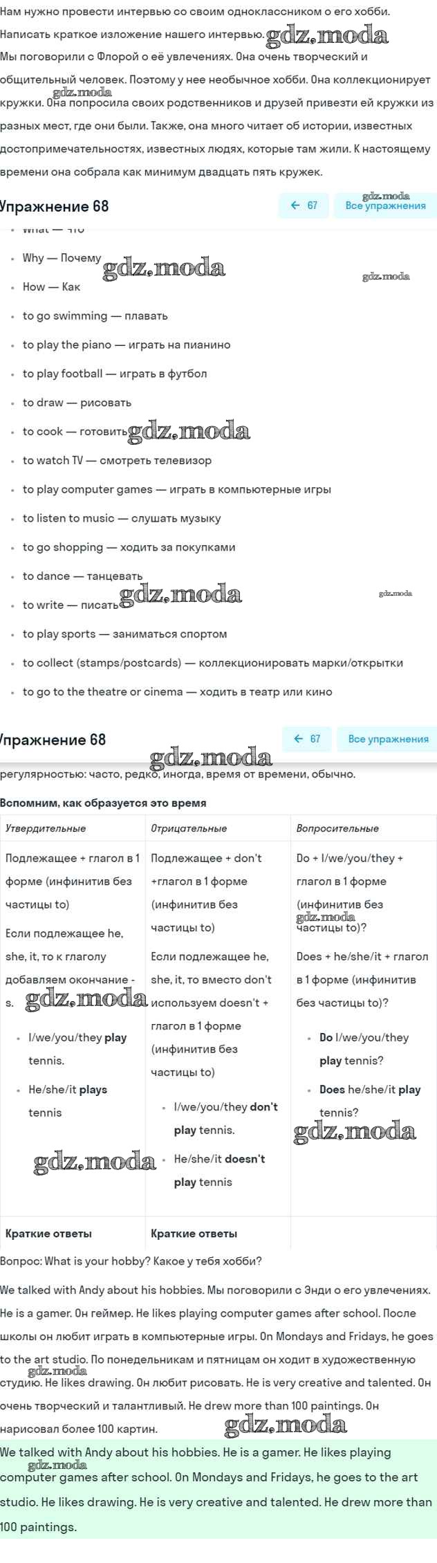ОТВЕТ на задание № 68 Учебник по Английскому языку 5 класс Биболетова Enjoy English