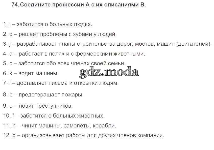 ОТВЕТ на задание № 74 Учебник по Английскому языку 5 класс Биболетова Enjoy English
