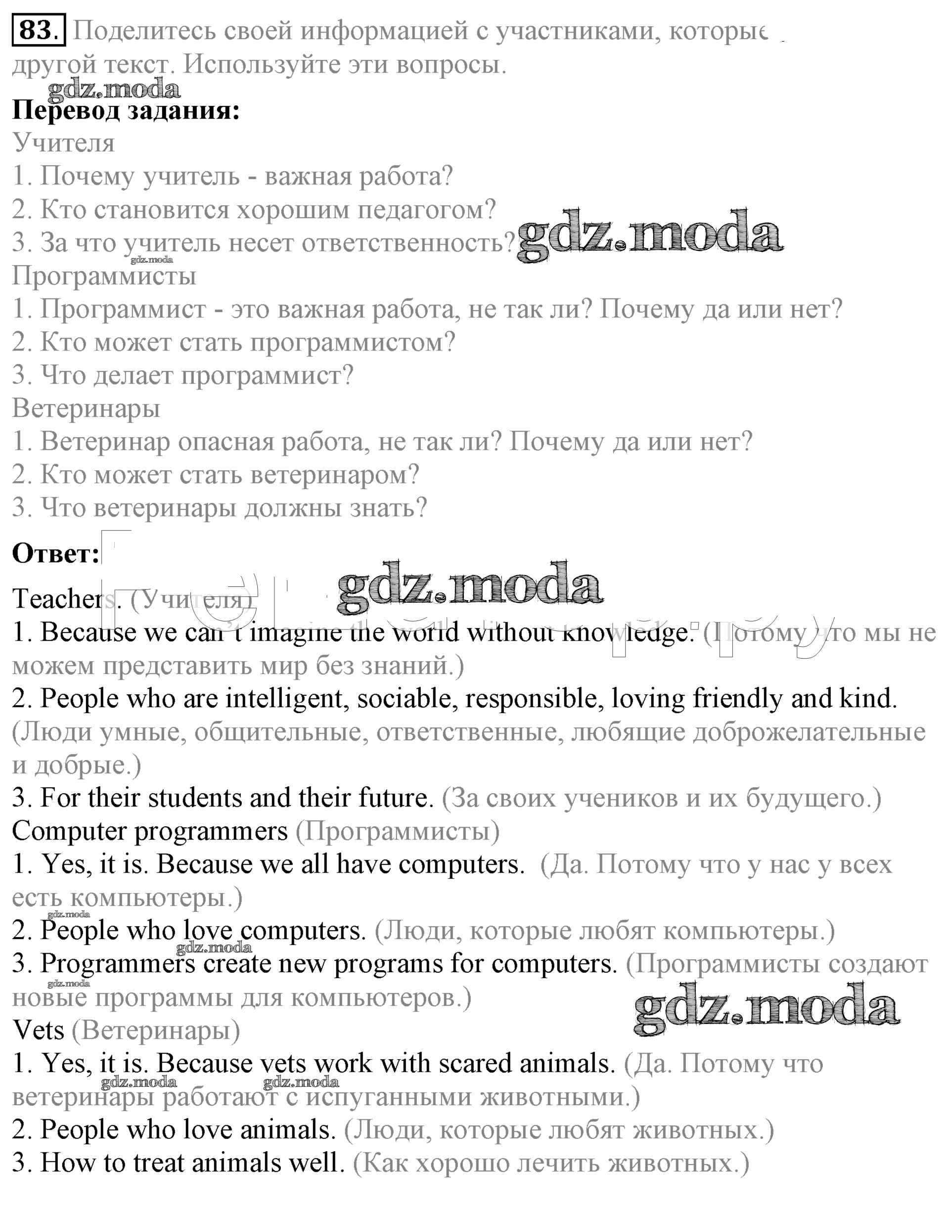 ОТВЕТ на задание № 83 Учебник по Английскому языку 5 класс Биболетова Enjoy English