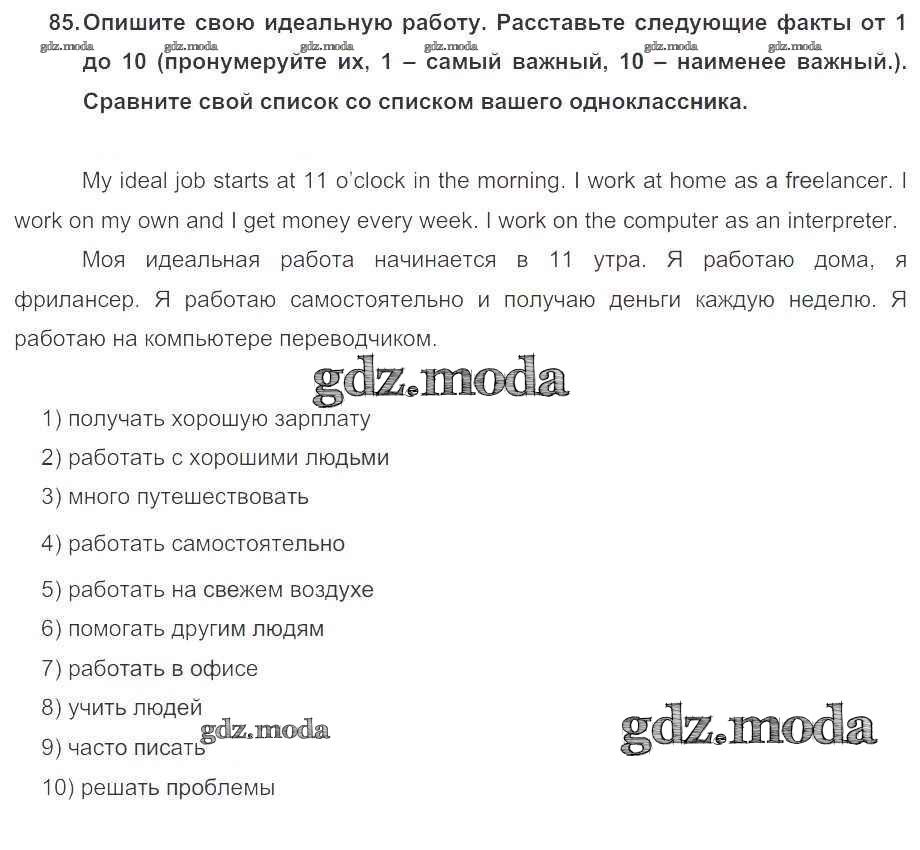 ОТВЕТ на задание № 85 Учебник по Английскому языку 5 класс Биболетова Enjoy English