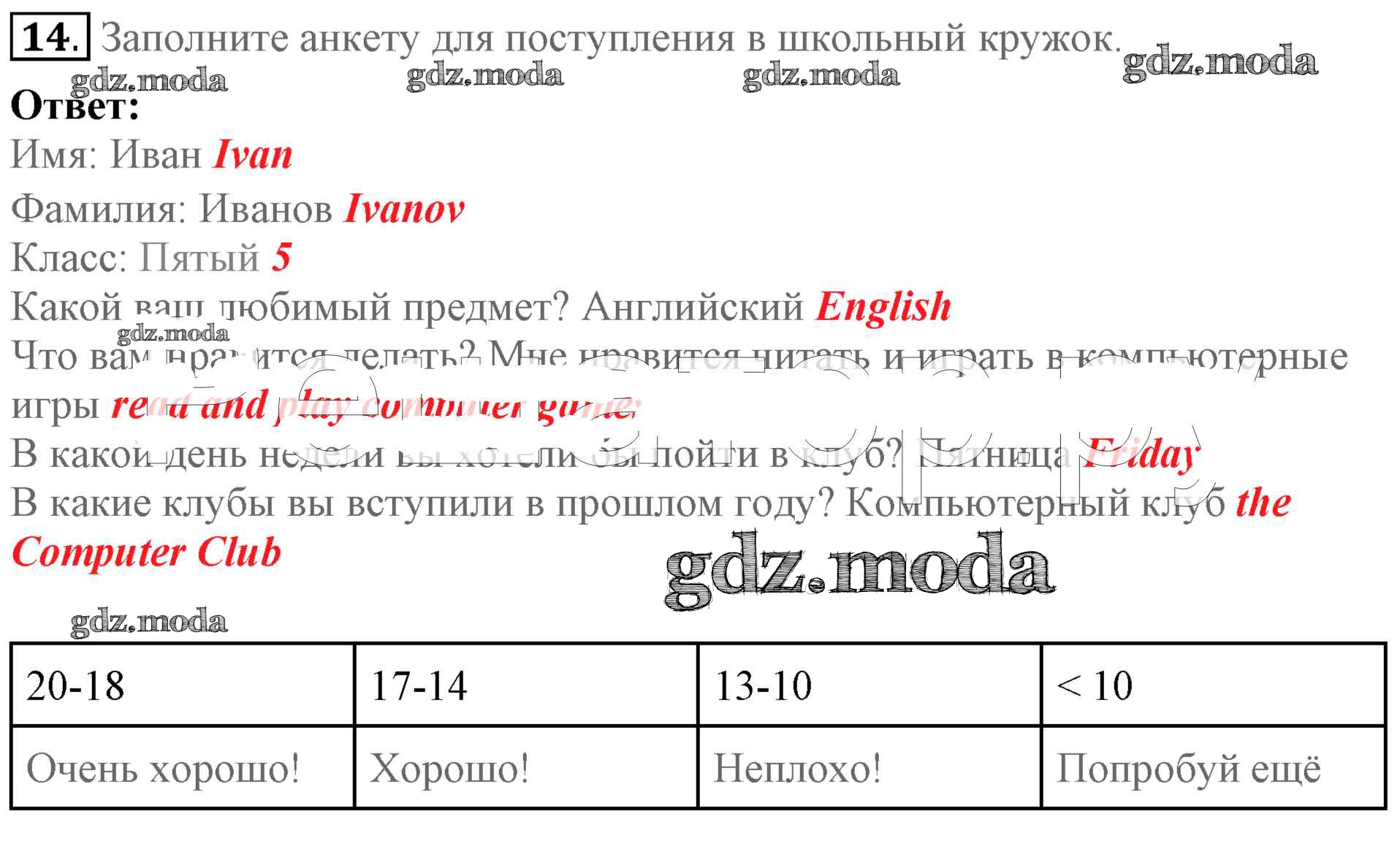 ОТВЕТ на задание № 14 Учебник по Английскому языку 5 класс Биболетова Enjoy English