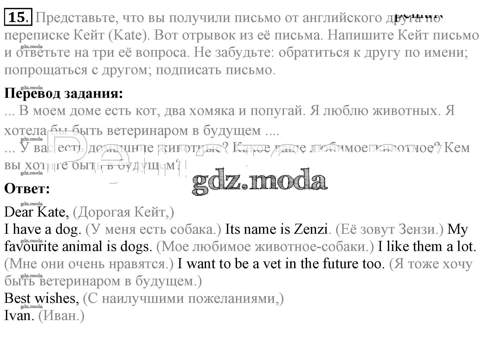 ОТВЕТ на задание № 15 Учебник по Английскому языку 5 класс Биболетова Enjoy English