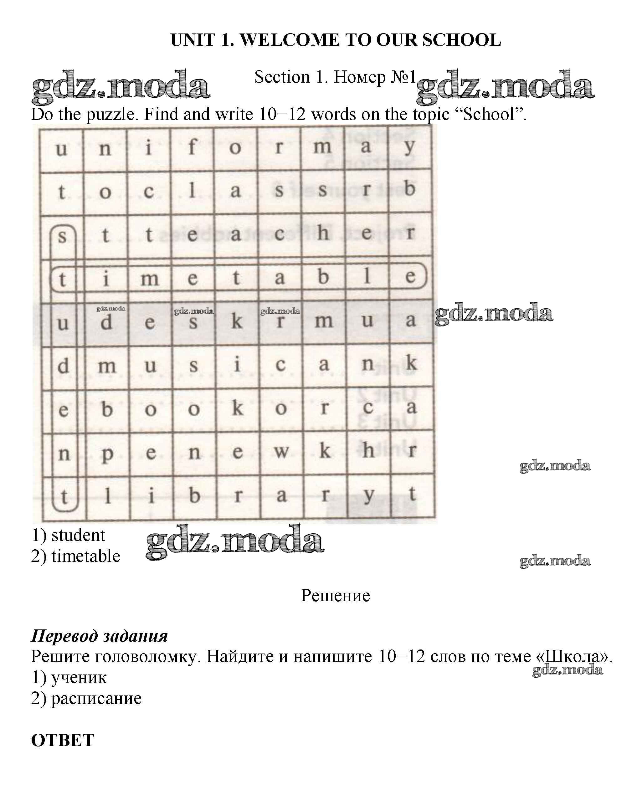 ОТВЕТ на задание № 1 Рабочая тетрадь по Английскому языку 5 класс Биболетова Enjoy English