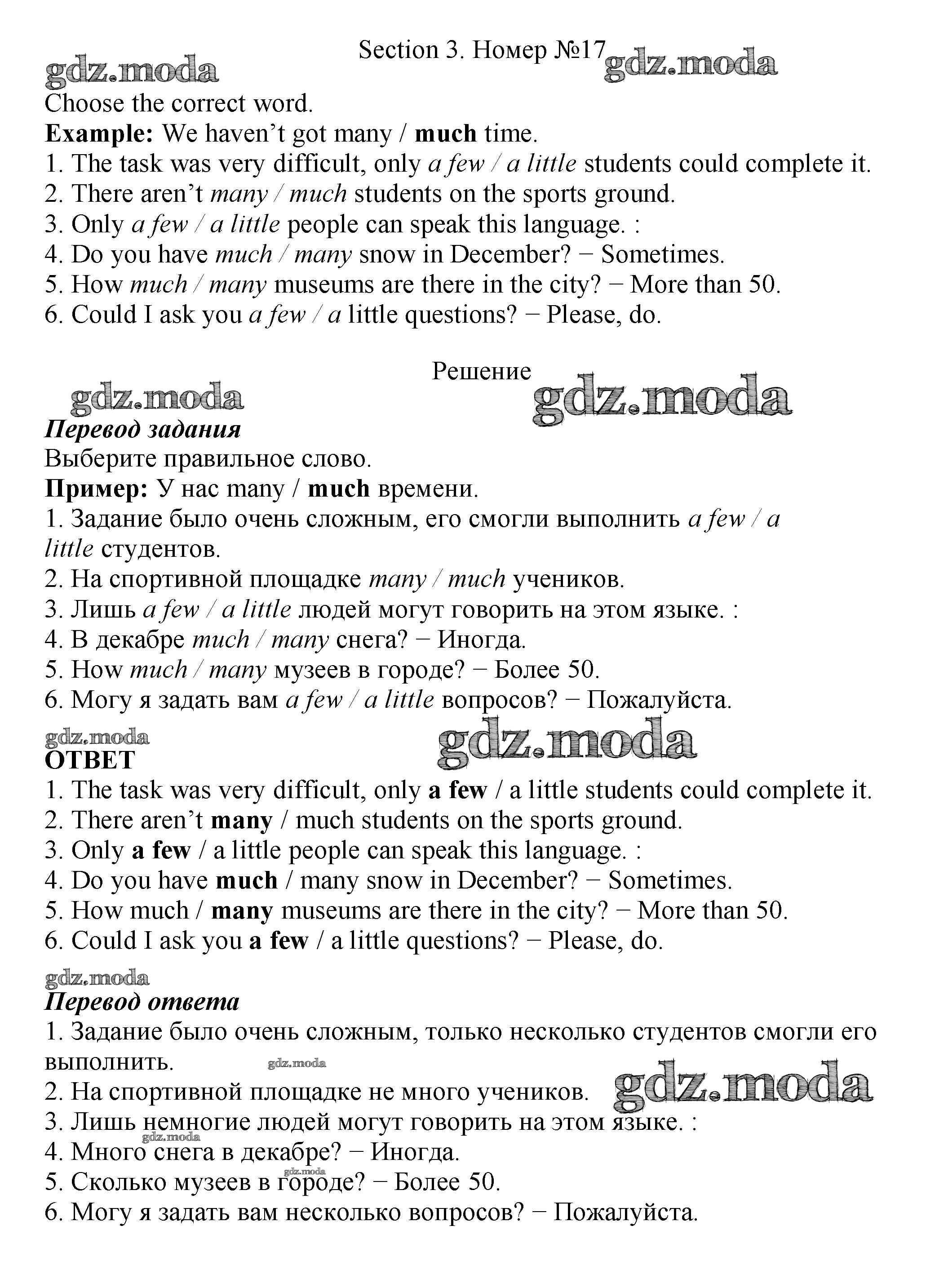 ОТВЕТ на задание № 17 Рабочая тетрадь по Английскому языку 5 класс Биболетова Enjoy English