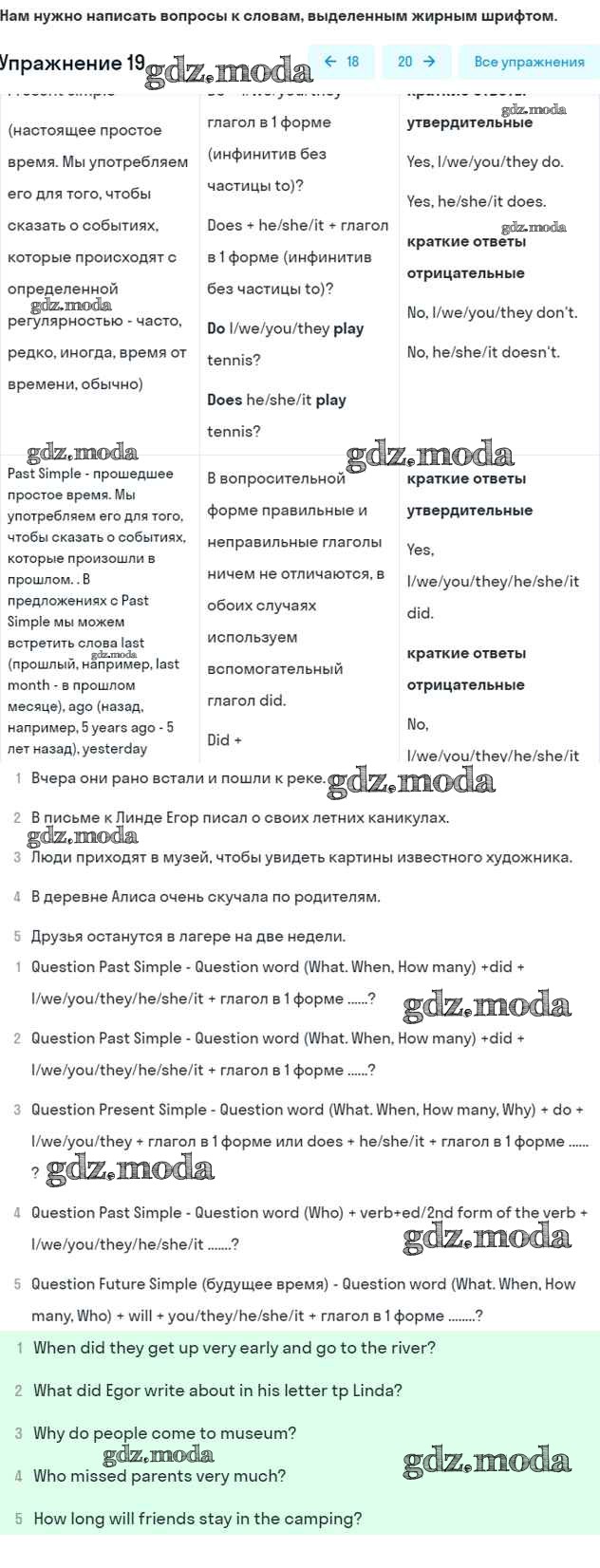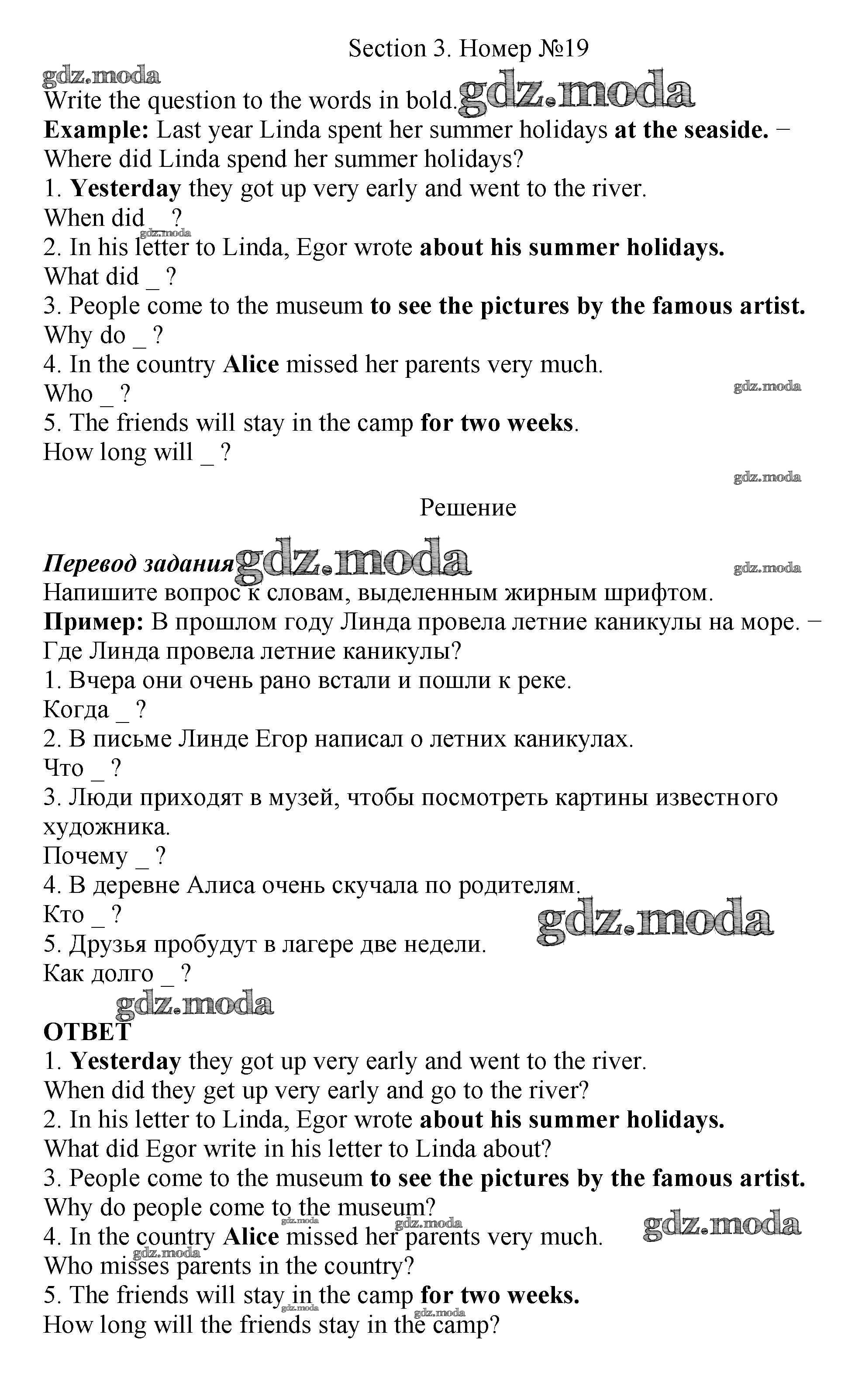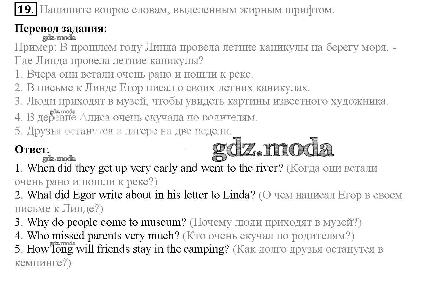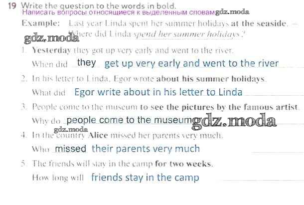 ОТВЕТ на задание № 19 Рабочая тетрадь по Английскому языку 5 класс Биболетова Enjoy English