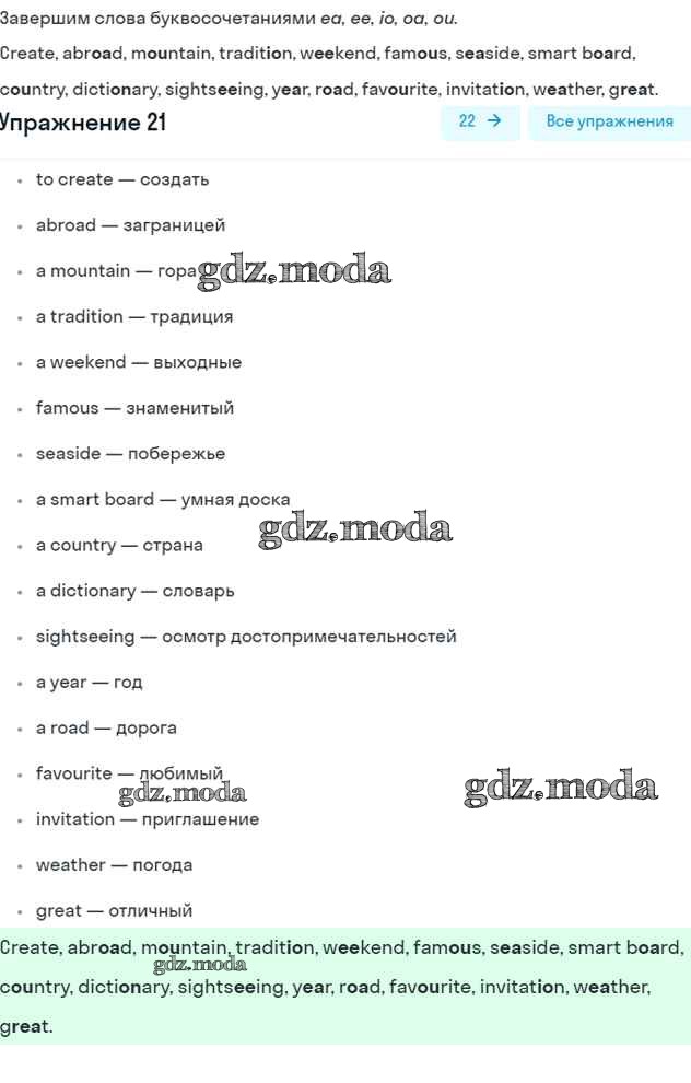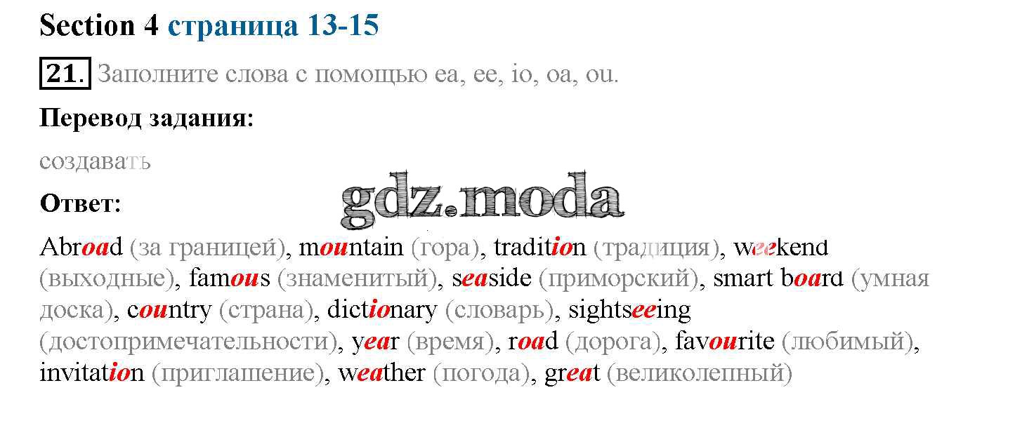ОТВЕТ на задание № 21 Рабочая тетрадь по Английскому языку 5 класс Биболетова Enjoy English