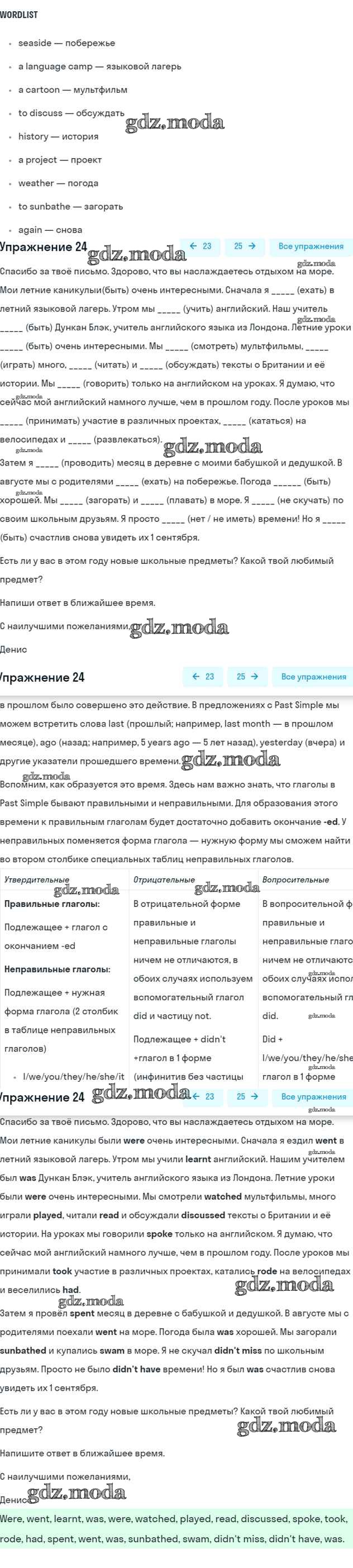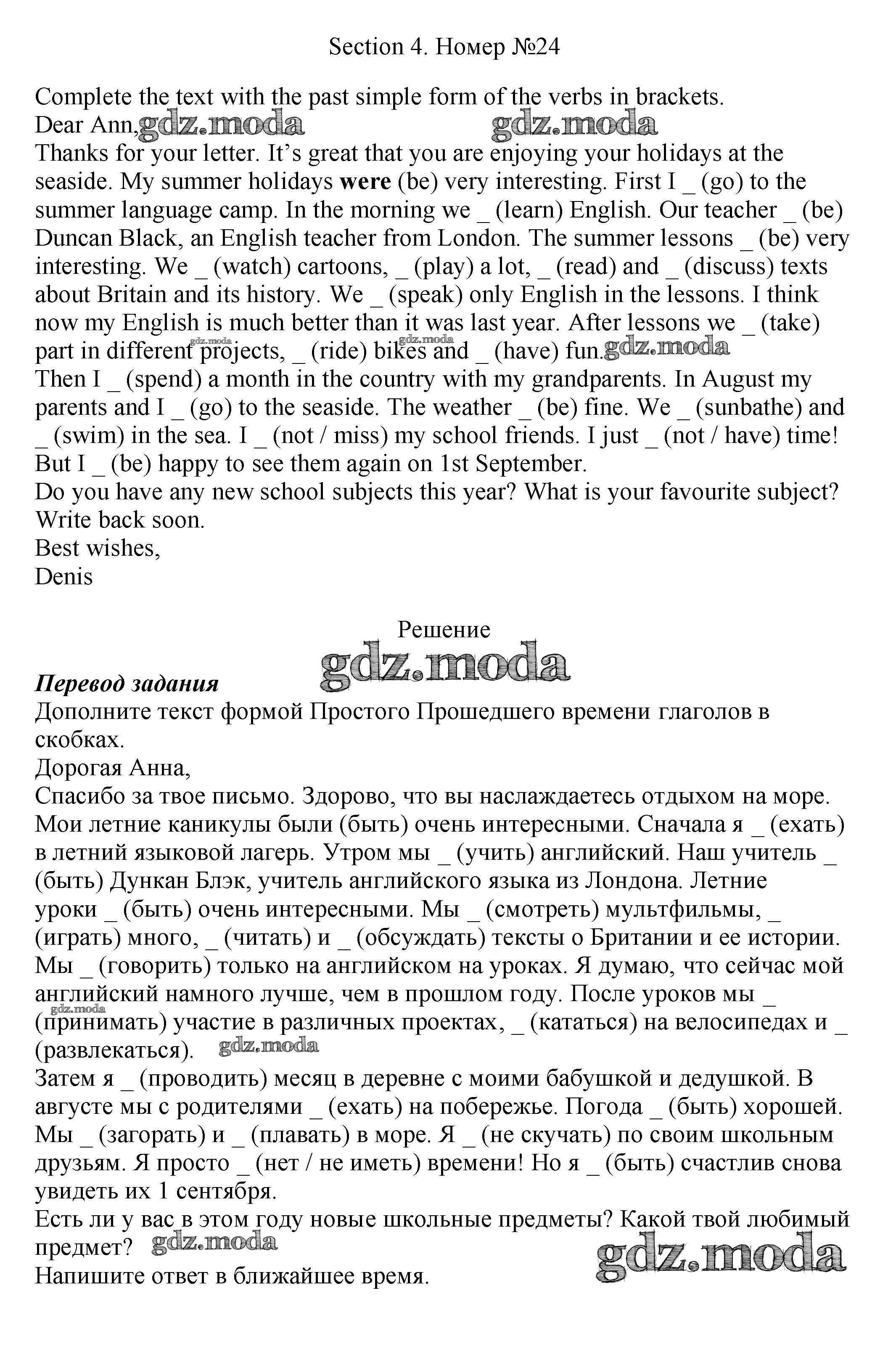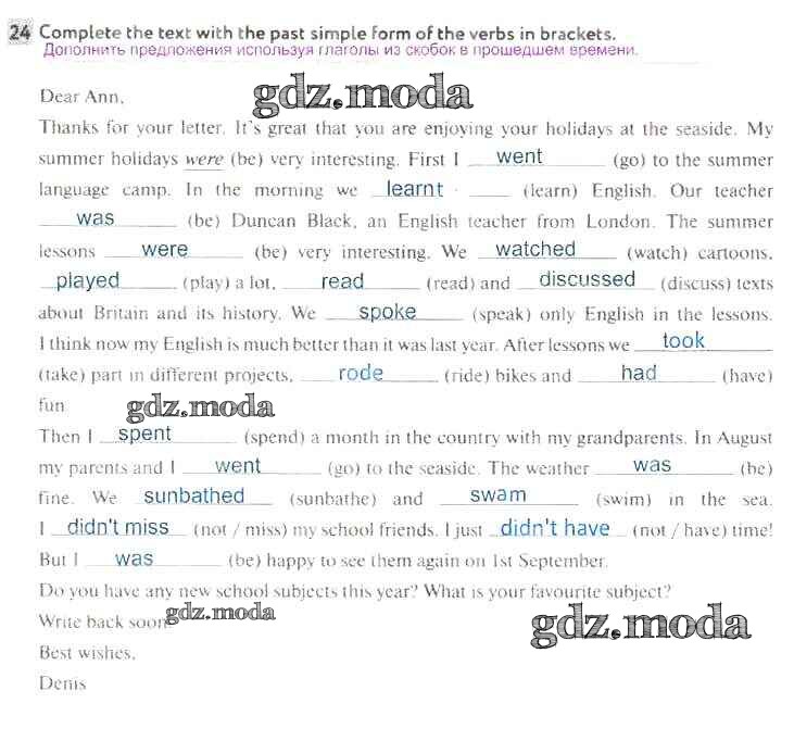ОТВЕТ на задание № 24 Рабочая тетрадь по Английскому языку 5 класс Биболетова Enjoy English