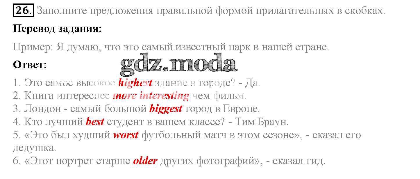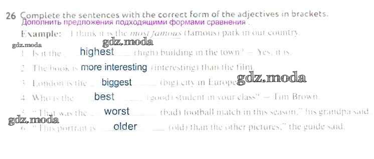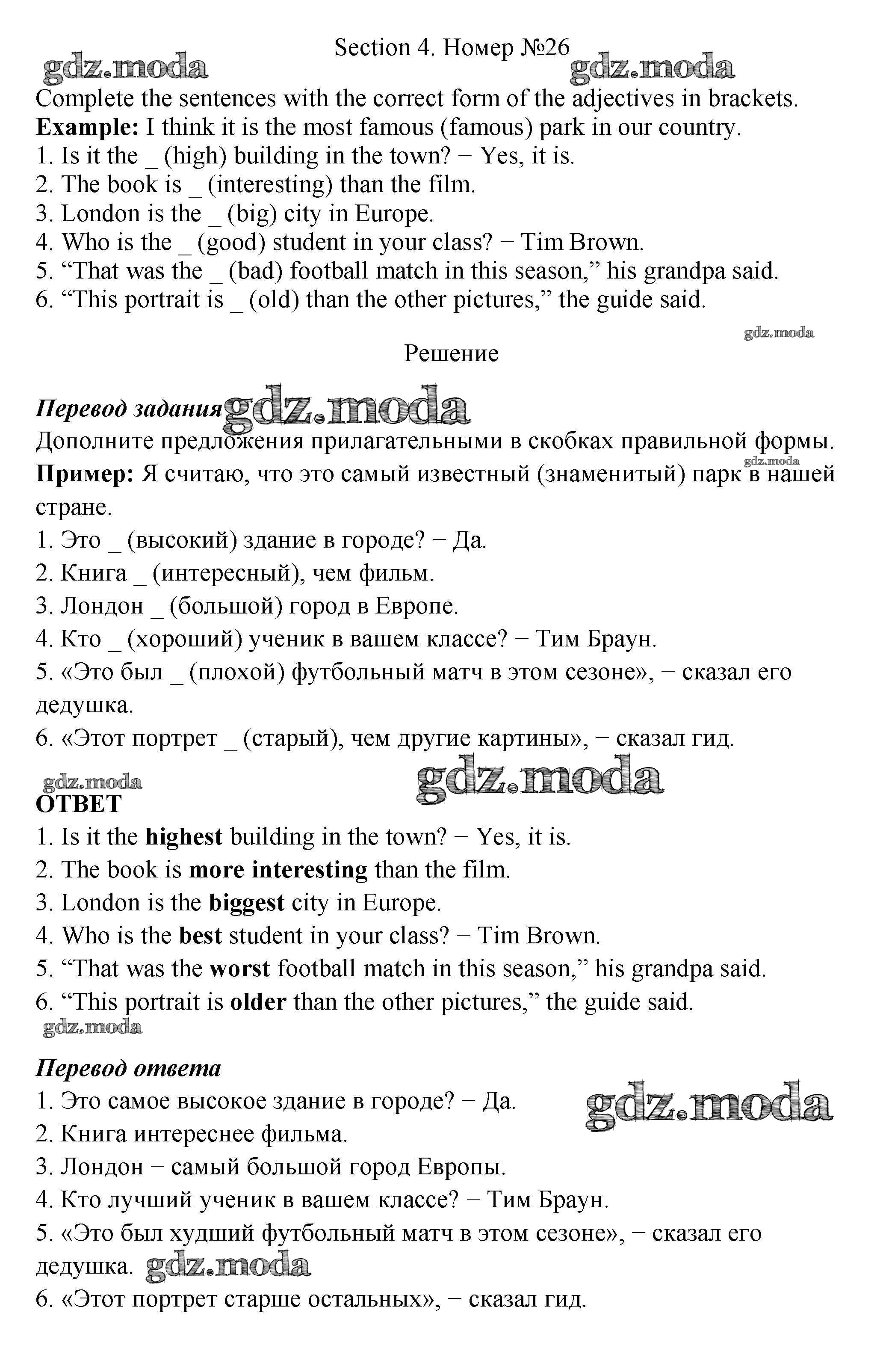 ОТВЕТ на задание № 26 Рабочая тетрадь по Английскому языку 5 класс Биболетова Enjoy English