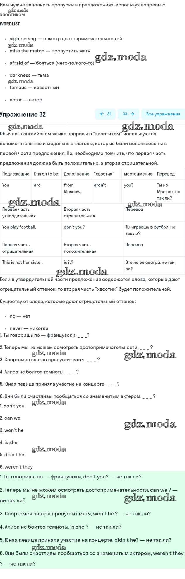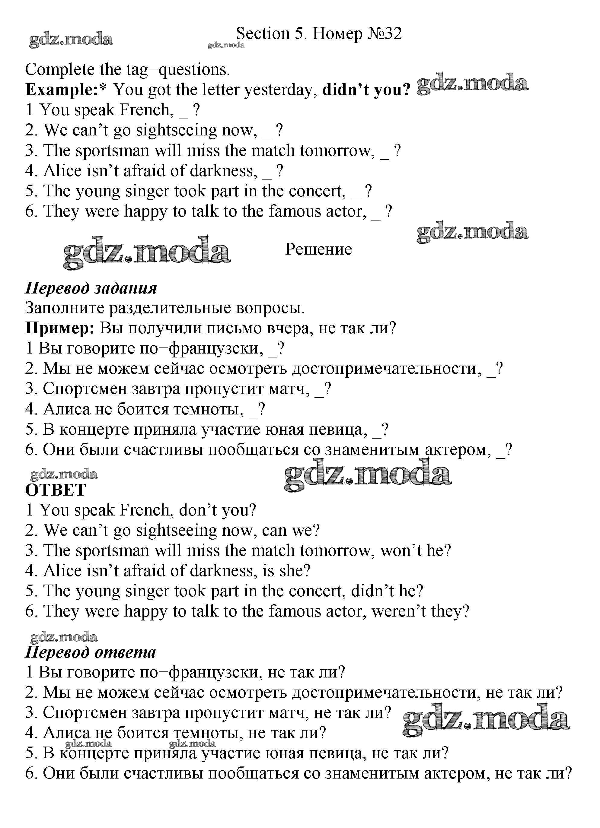 ОТВЕТ на задание № 32 Рабочая тетрадь по Английскому языку 5 класс Биболетова Enjoy English