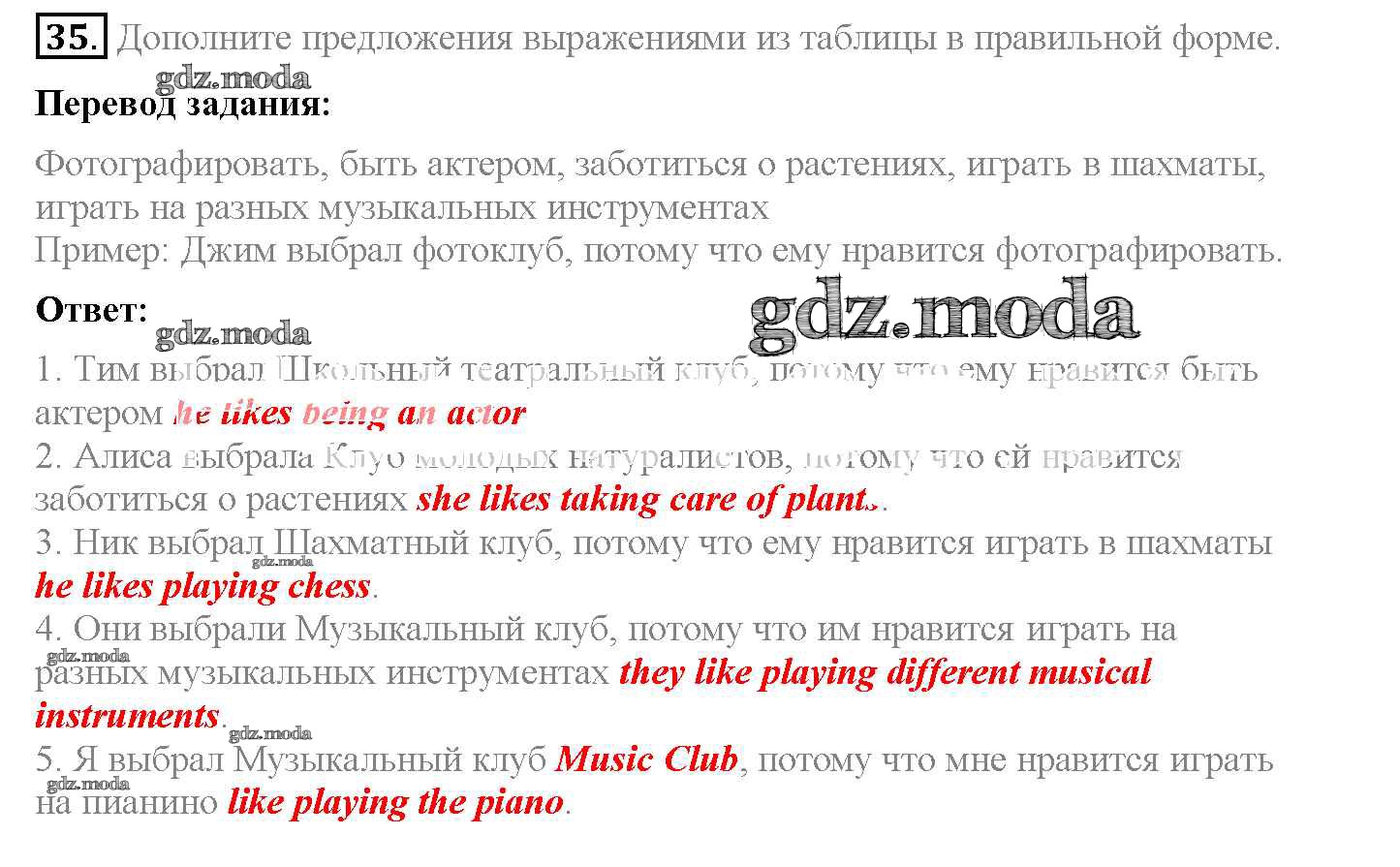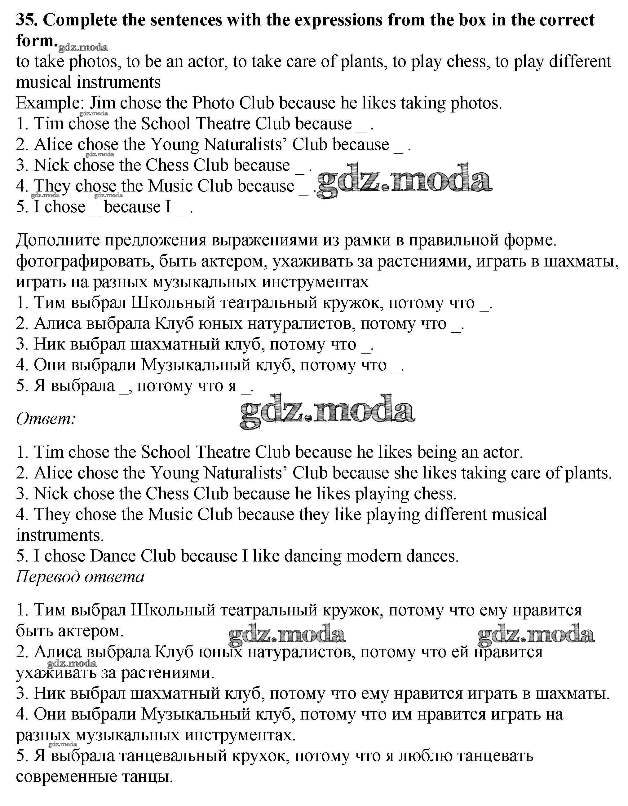 ОТВЕТ на задание № 35 Рабочая тетрадь по Английскому языку 5 класс Биболетова Enjoy English