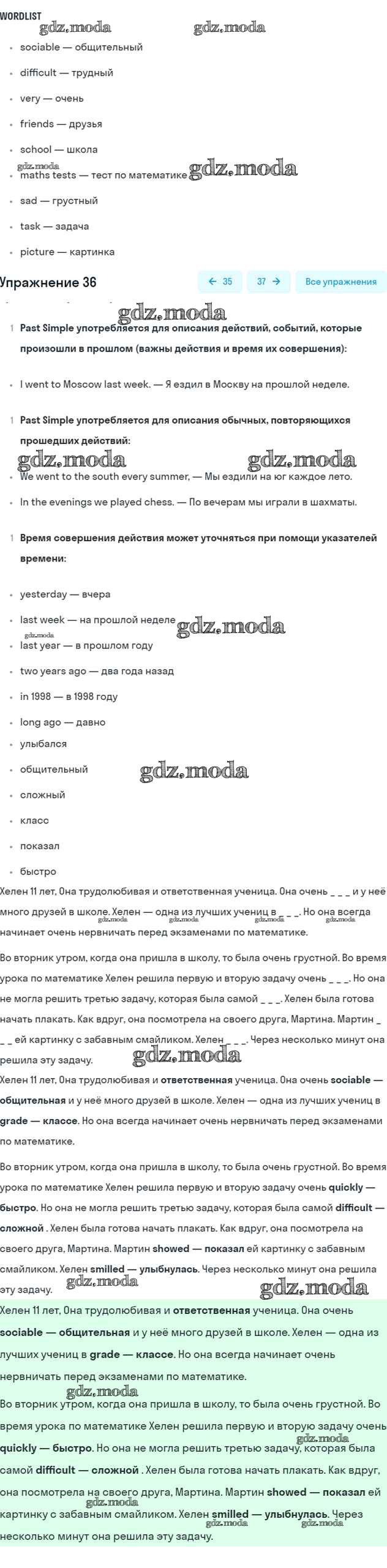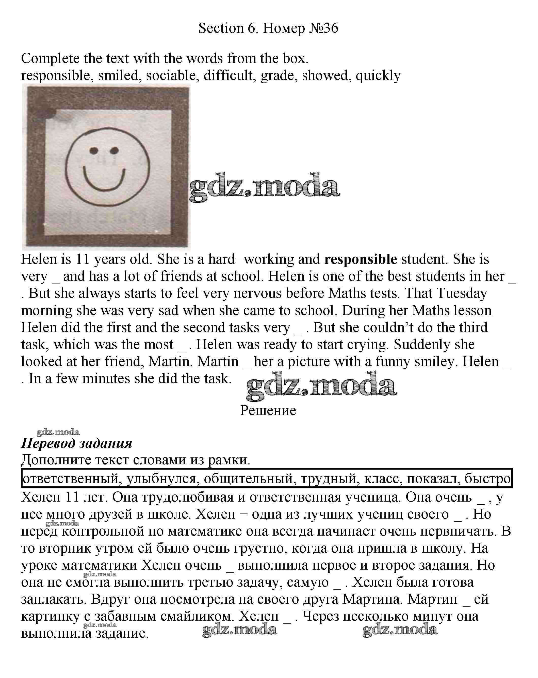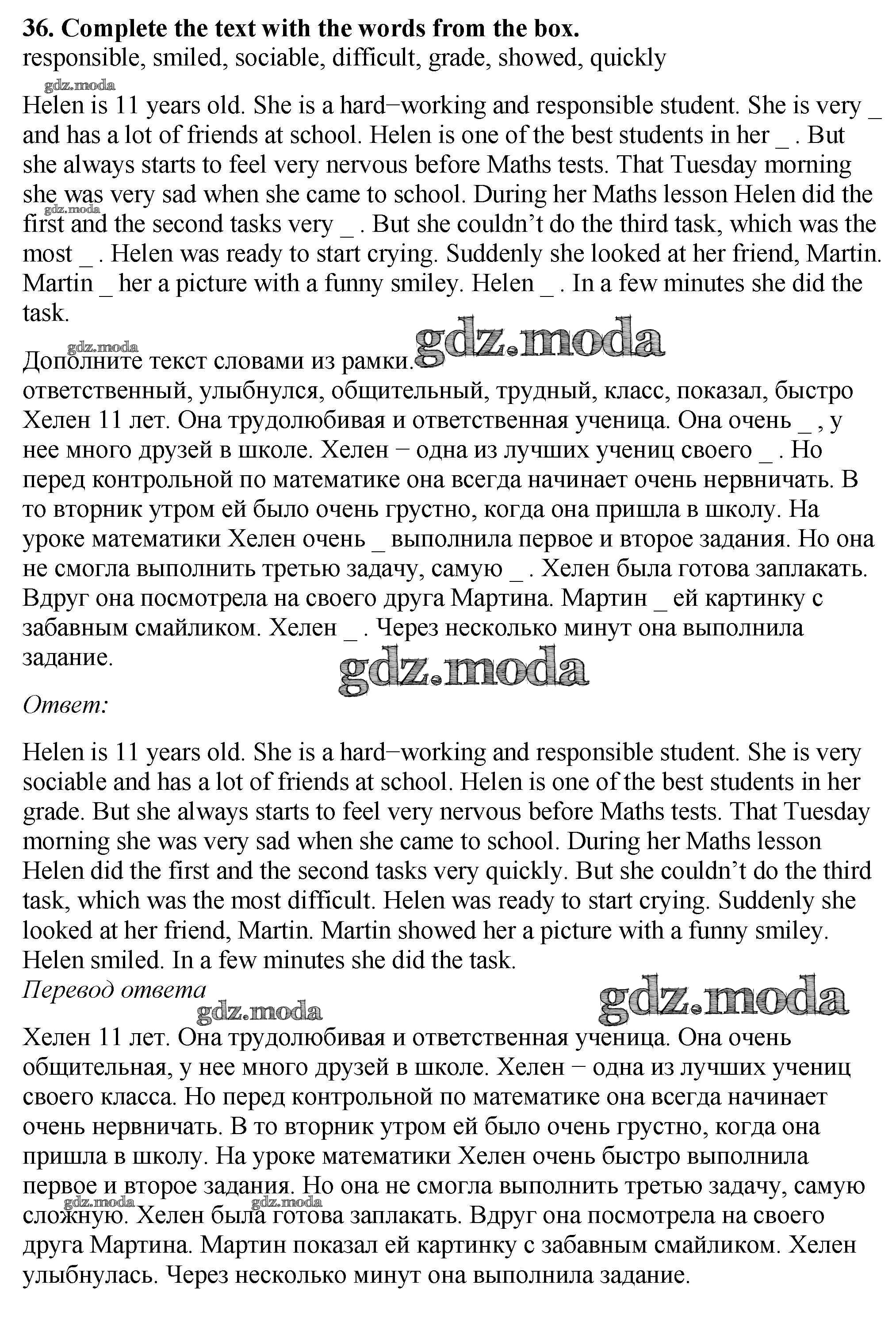 ОТВЕТ на задание № 36 Рабочая тетрадь по Английскому языку 5 класс Биболетова Enjoy English