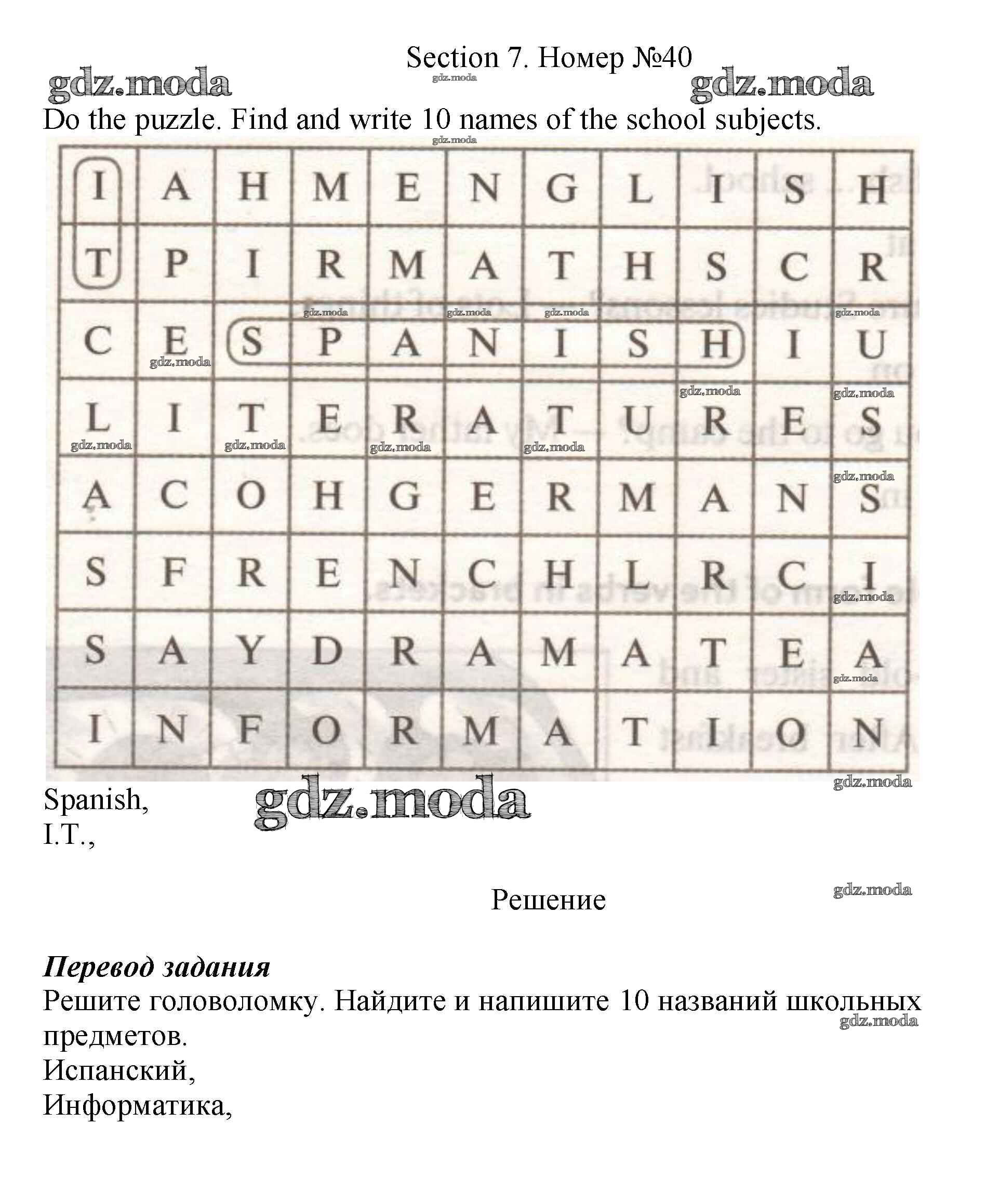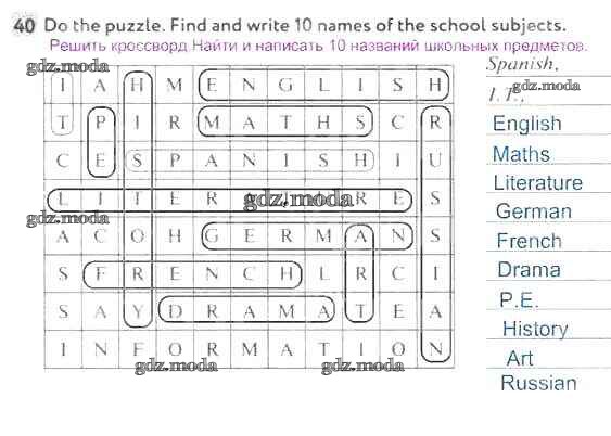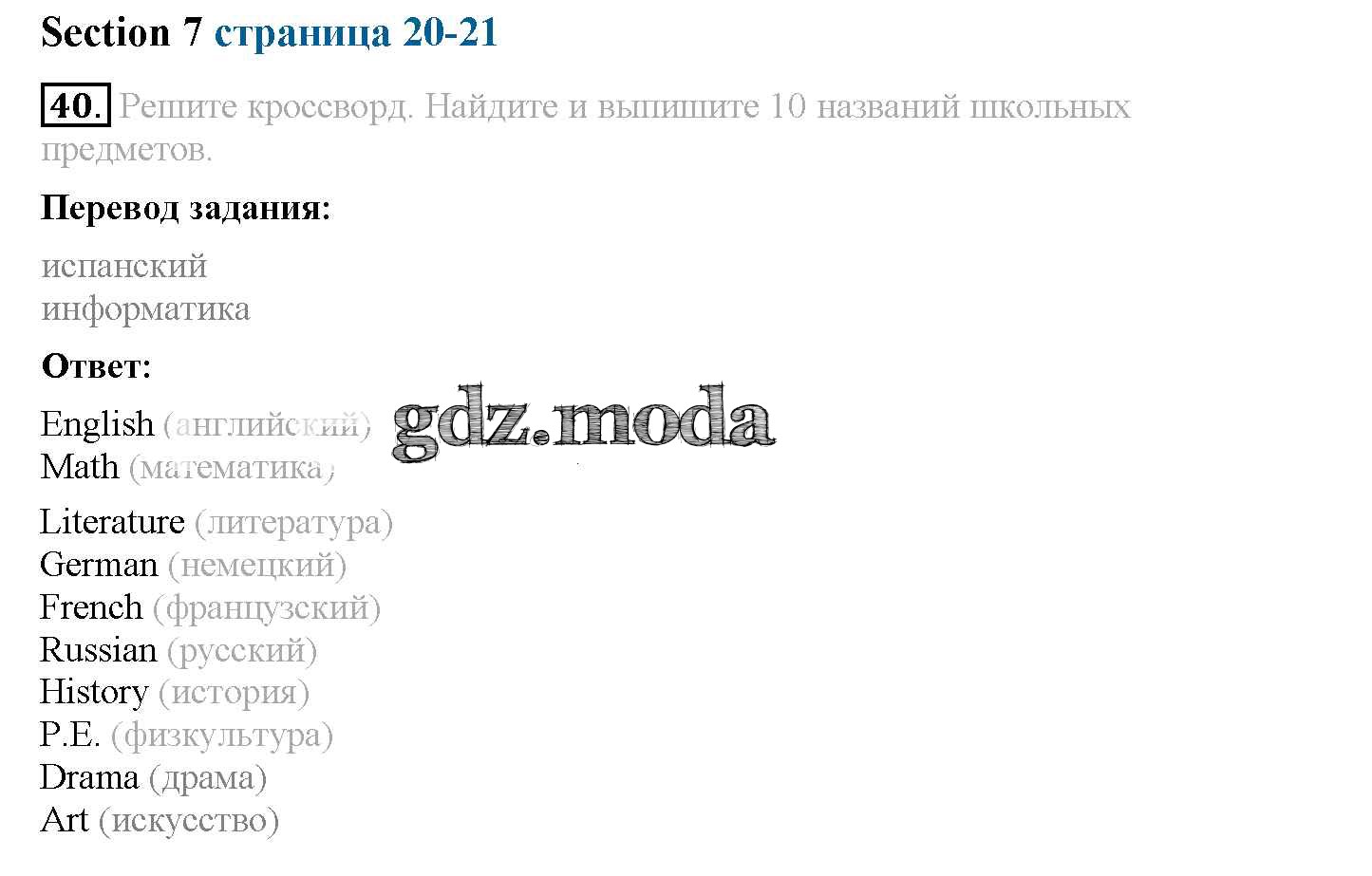 ОТВЕТ на задание № 40 Рабочая тетрадь по Английскому языку 5 класс Биболетова Enjoy English