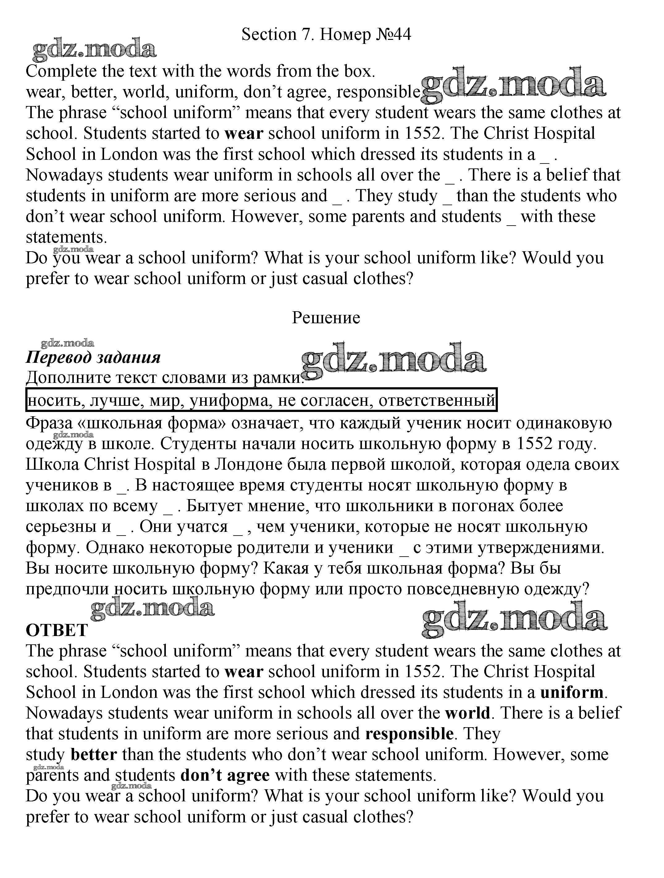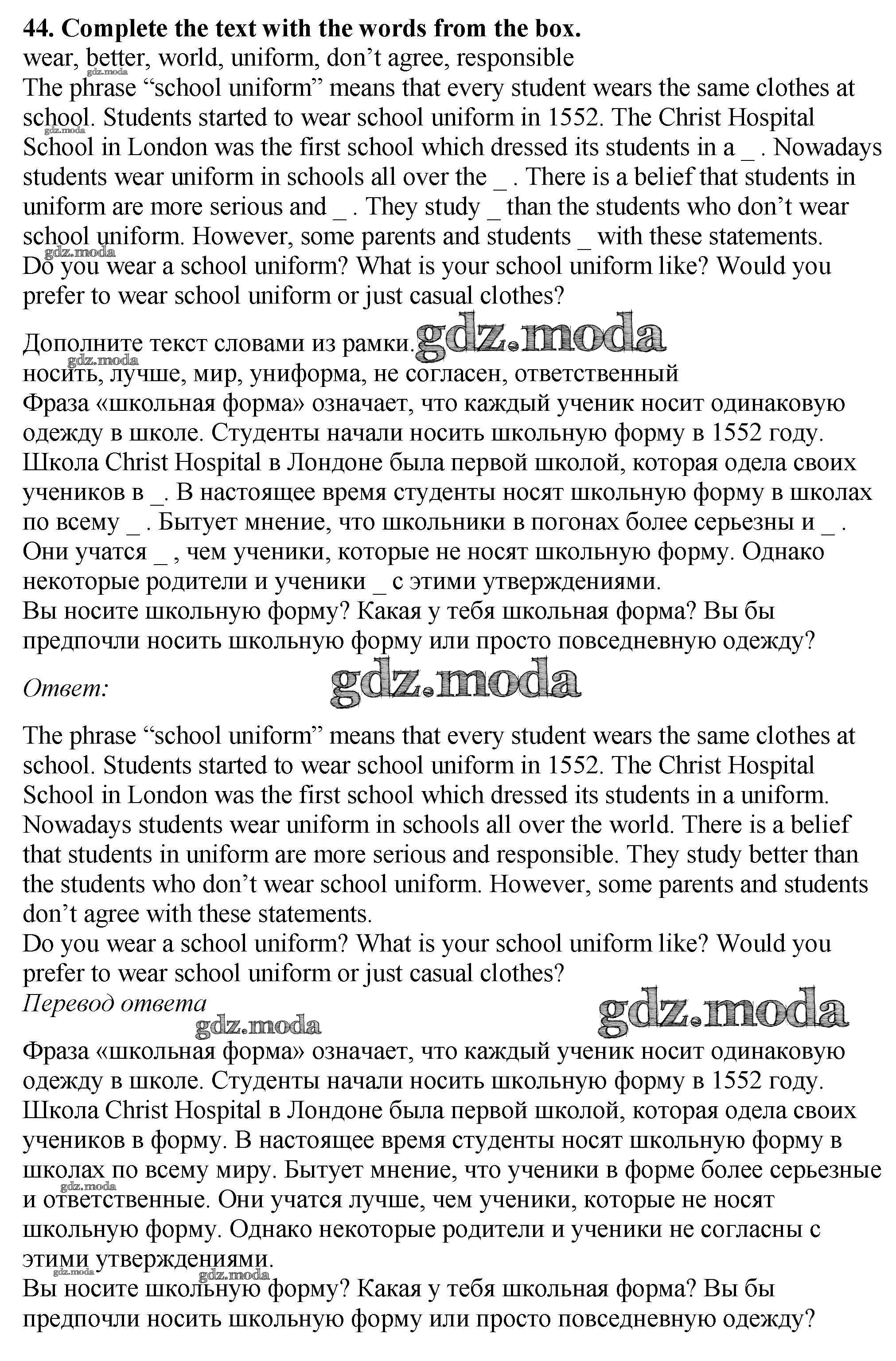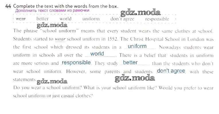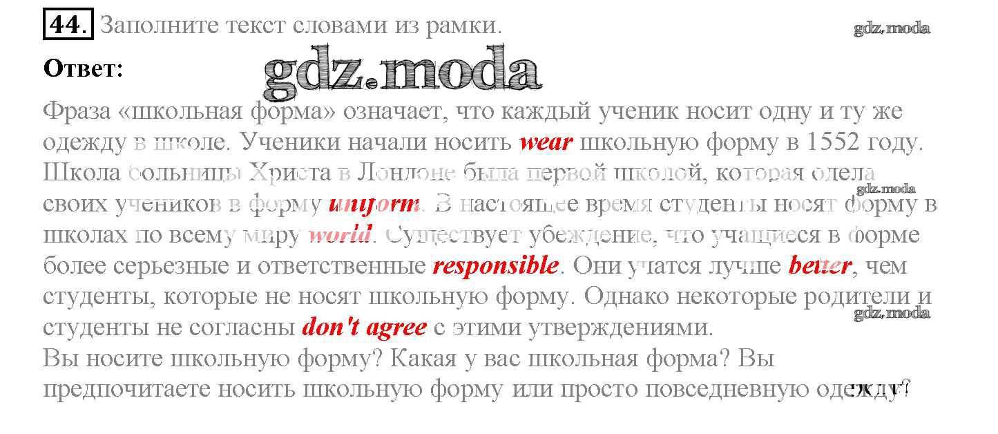 ОТВЕТ на задание № 44 Рабочая тетрадь по Английскому языку 5 класс Биболетова Enjoy English