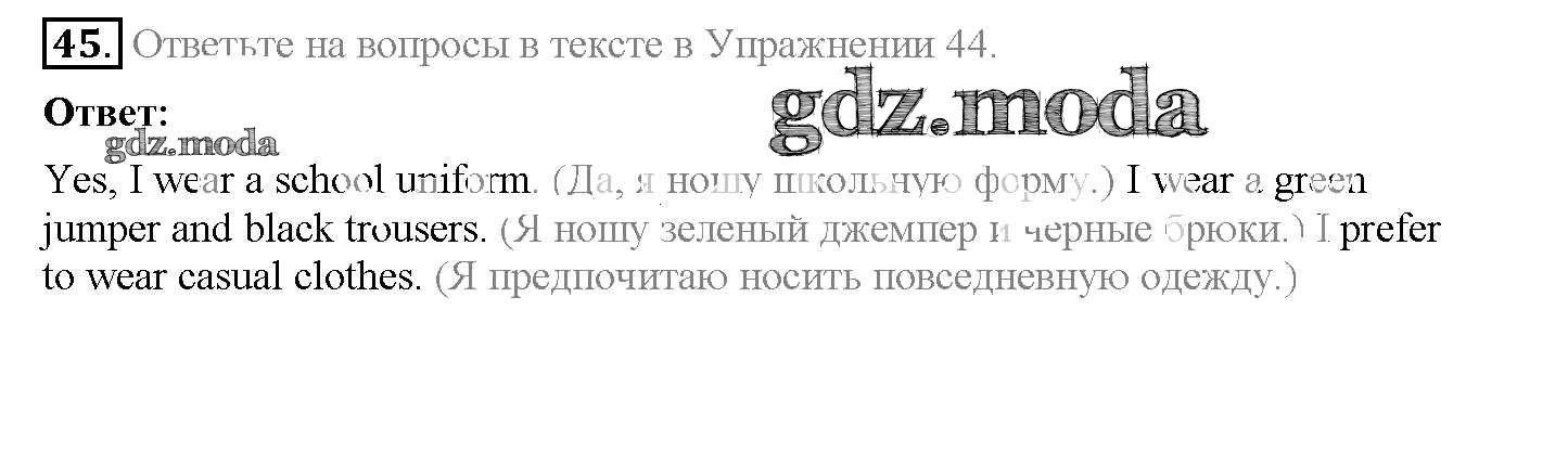 ОТВЕТ на задание № 45 Рабочая тетрадь по Английскому языку 5 класс Биболетова Enjoy English