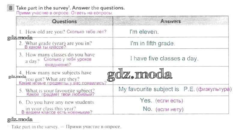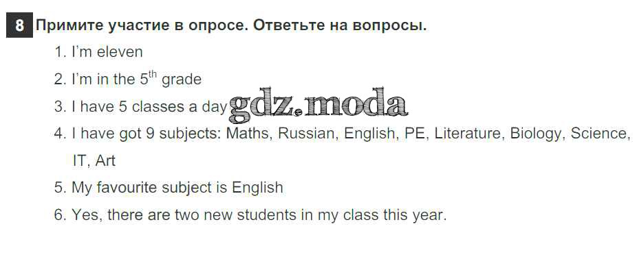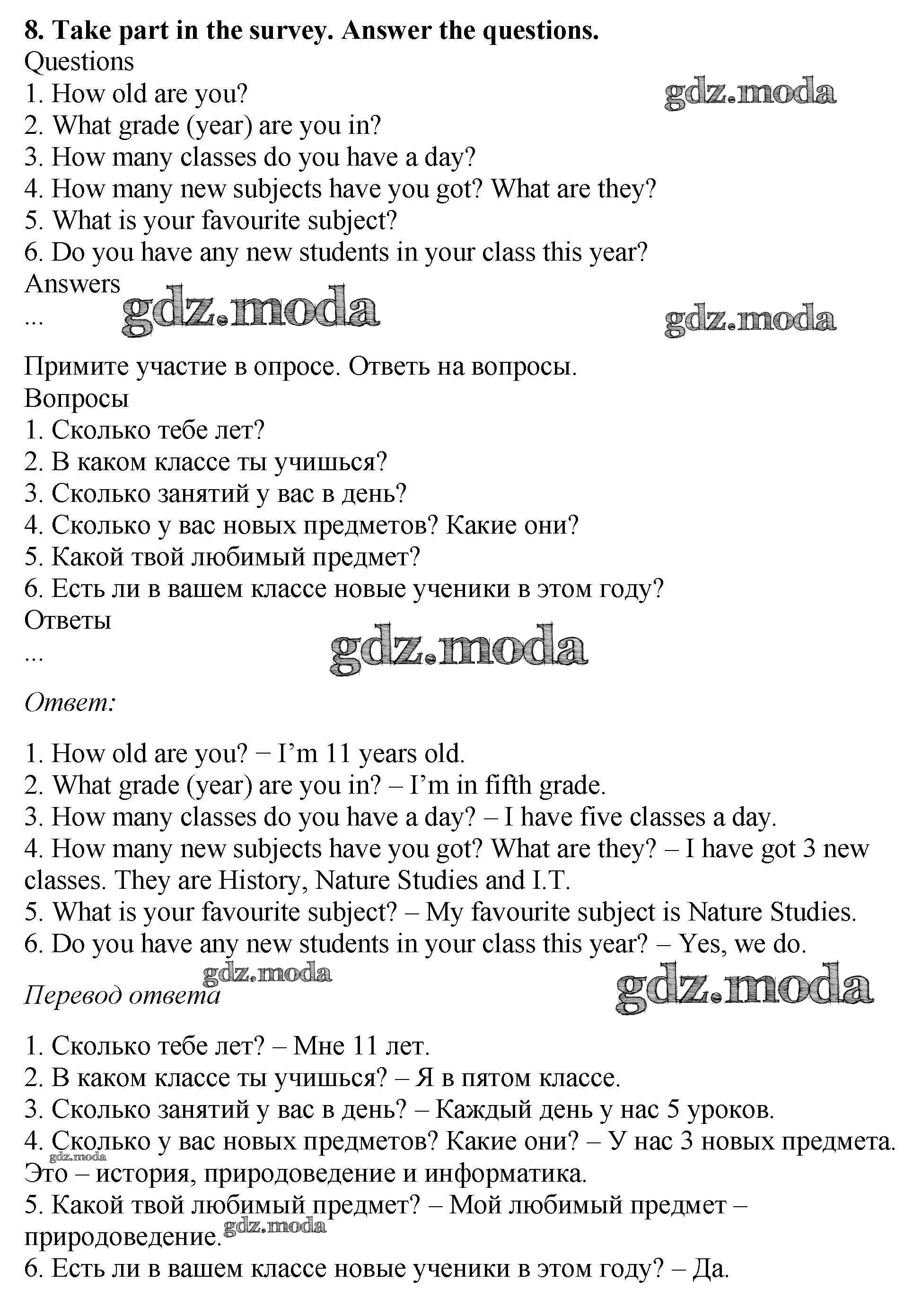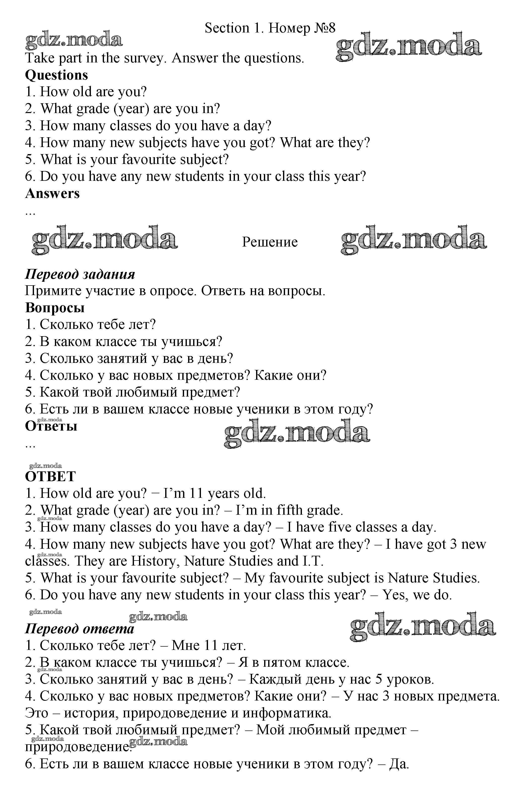 ОТВЕТ на задание № 8 Рабочая тетрадь по Английскому языку 5 класс Биболетова Enjoy English
