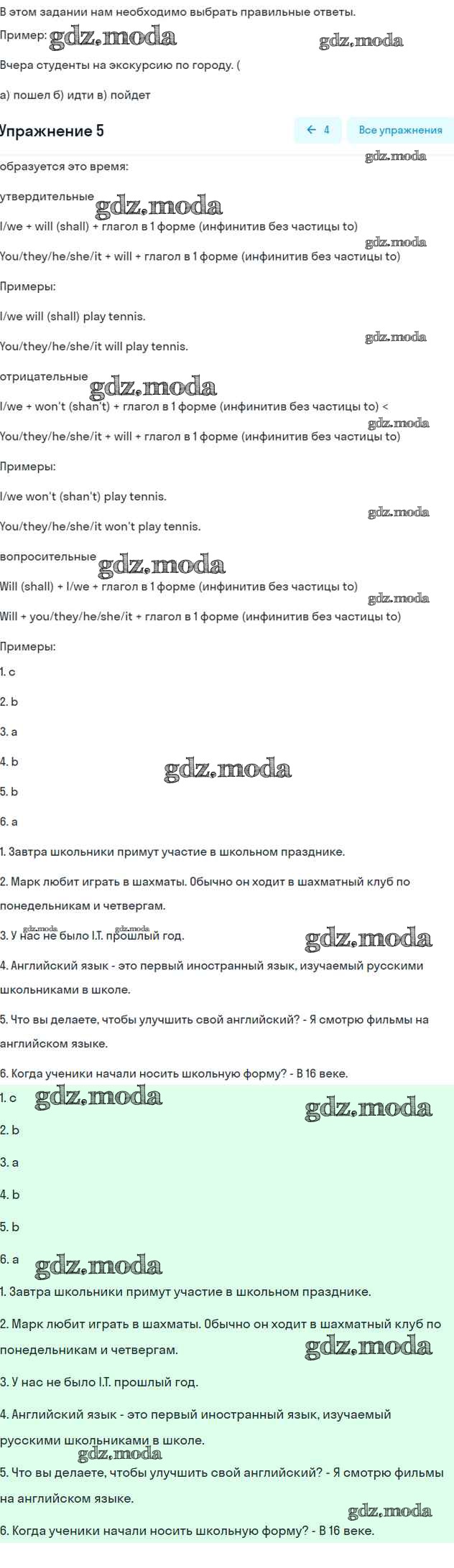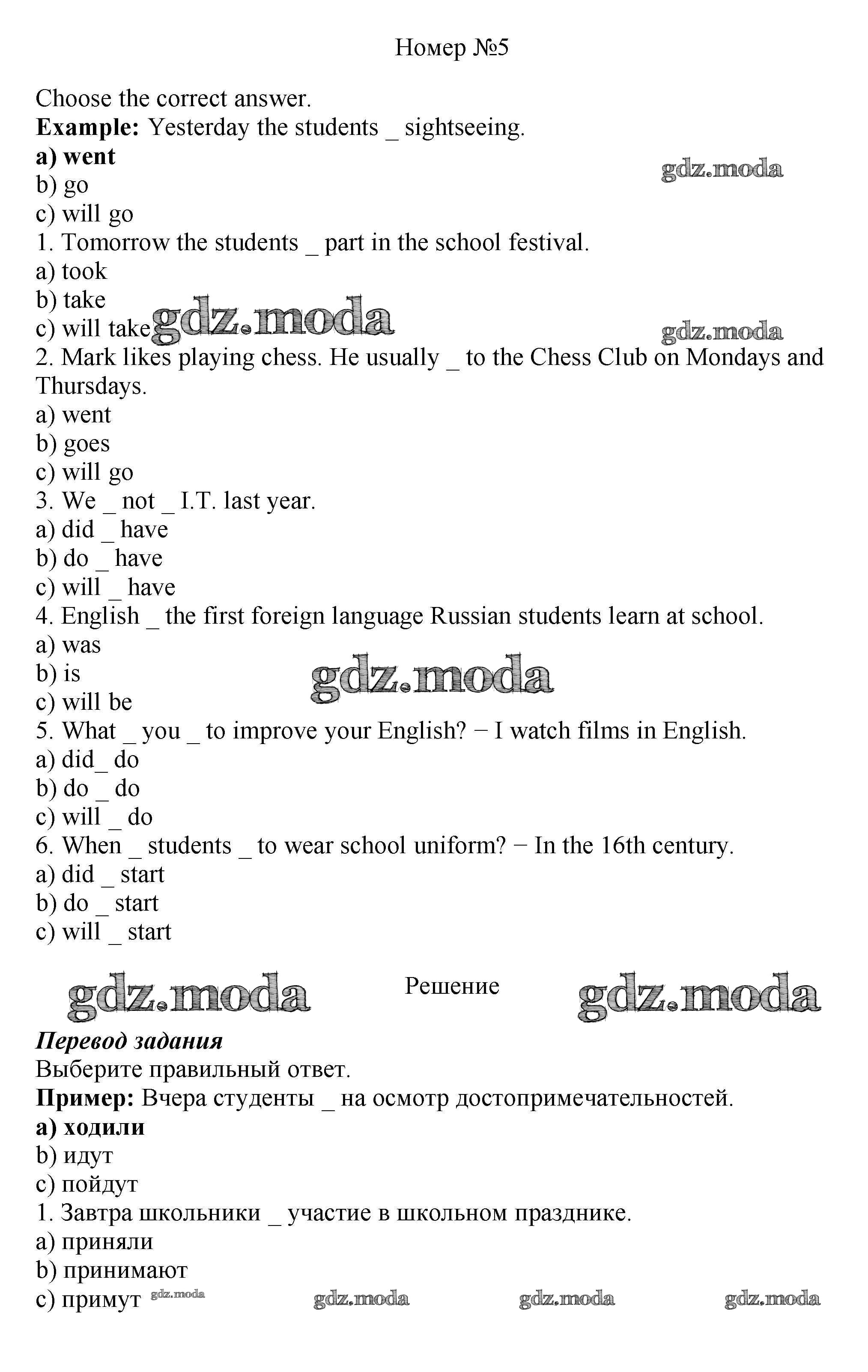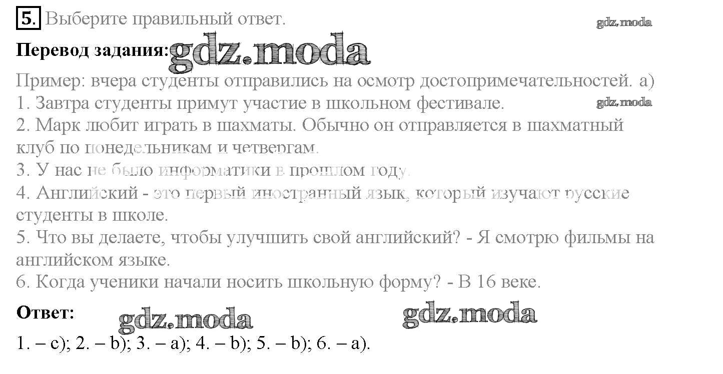 ОТВЕТ на задание № 5 Рабочая тетрадь по Английскому языку 5 класс Биболетова Enjoy English