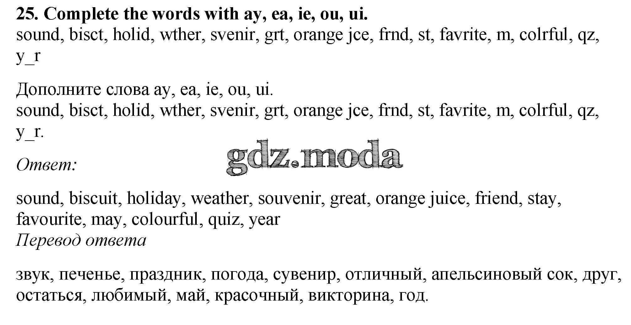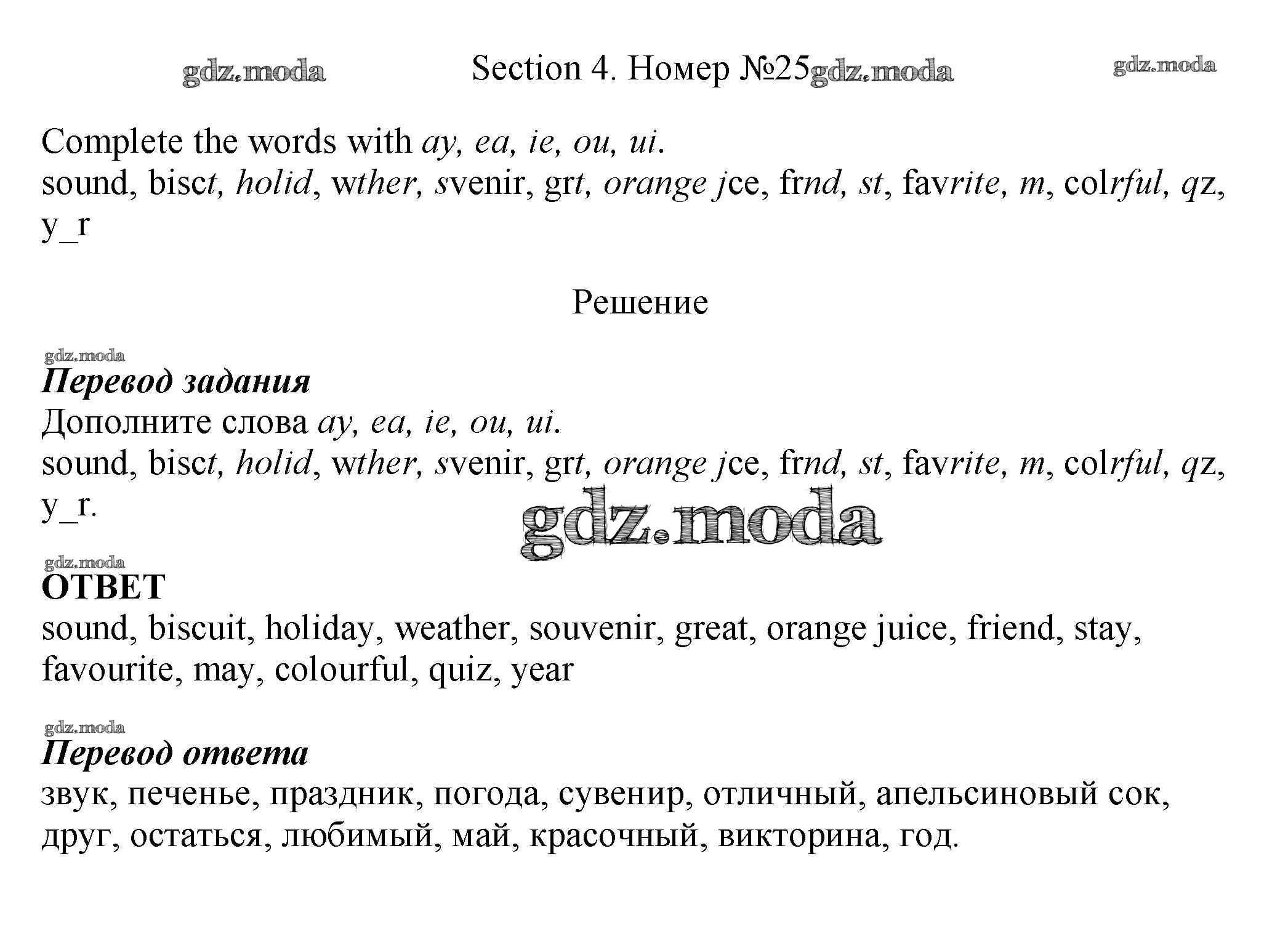 ОТВЕТ на задание № 25 Рабочая тетрадь по Английскому языку 5 класс Биболетова Enjoy English