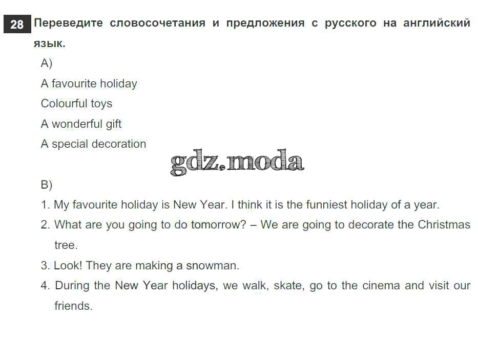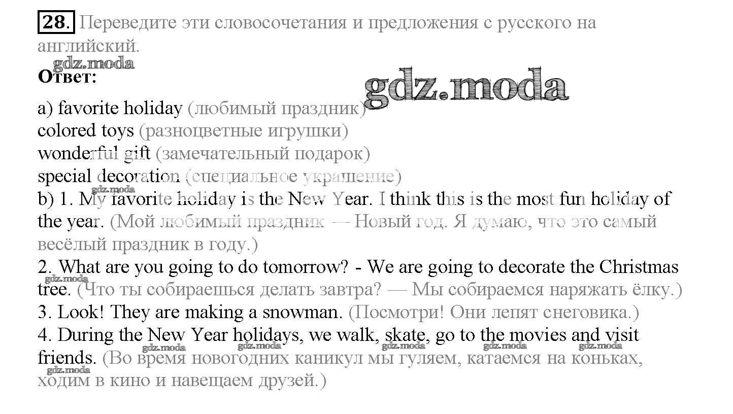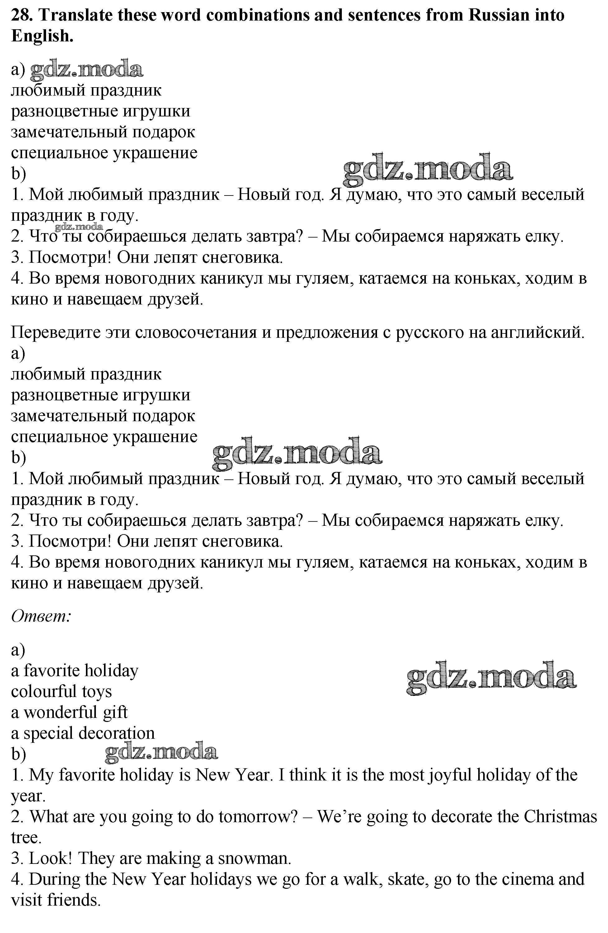 ОТВЕТ на задание № 28 Рабочая тетрадь по Английскому языку 5 класс Биболетова Enjoy English
