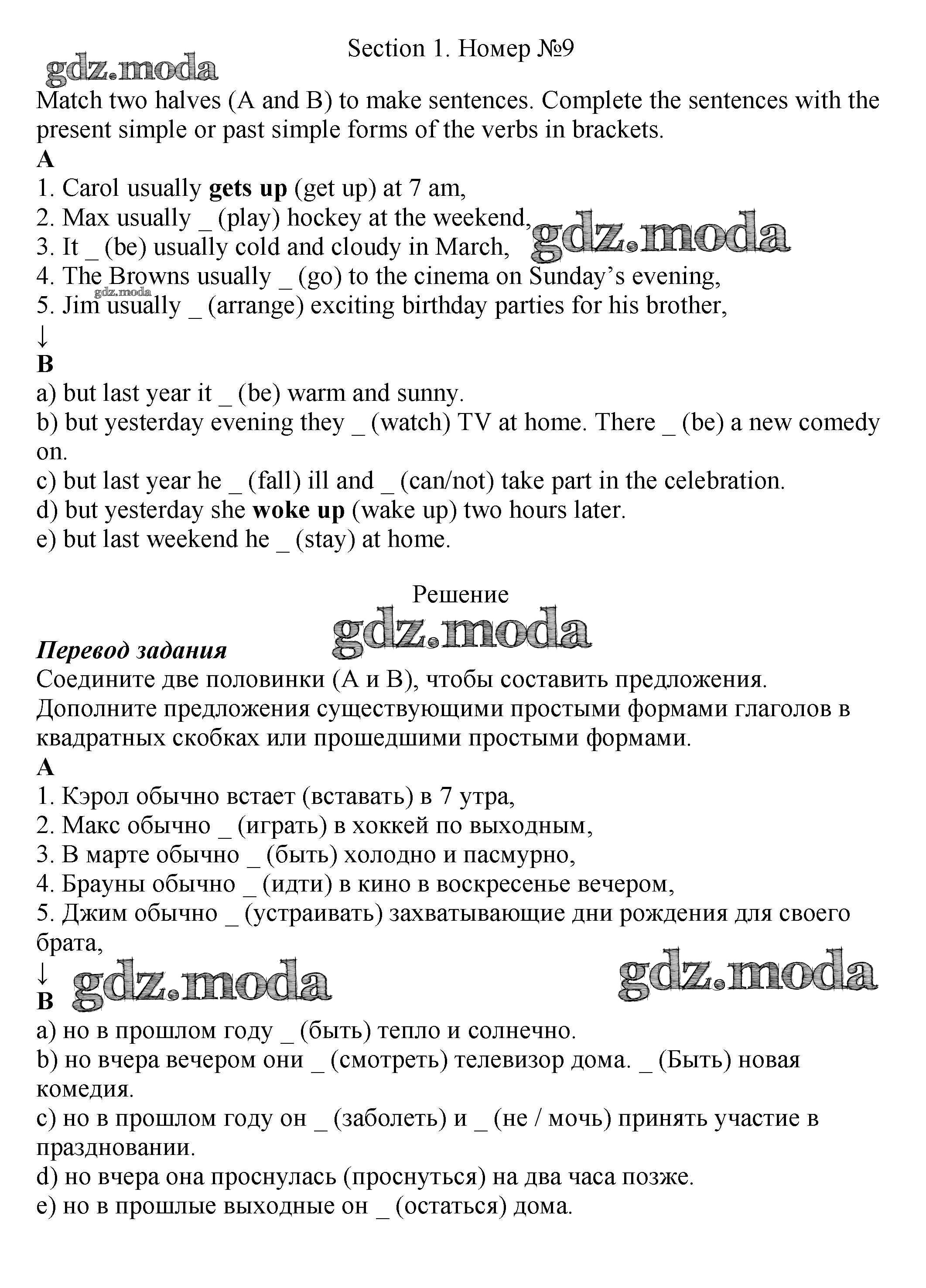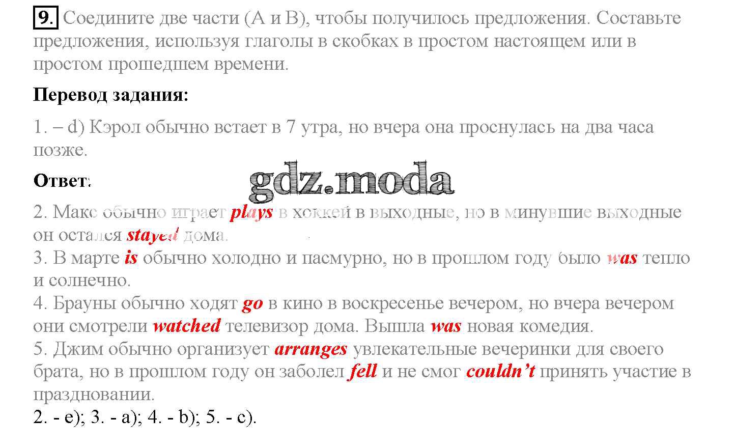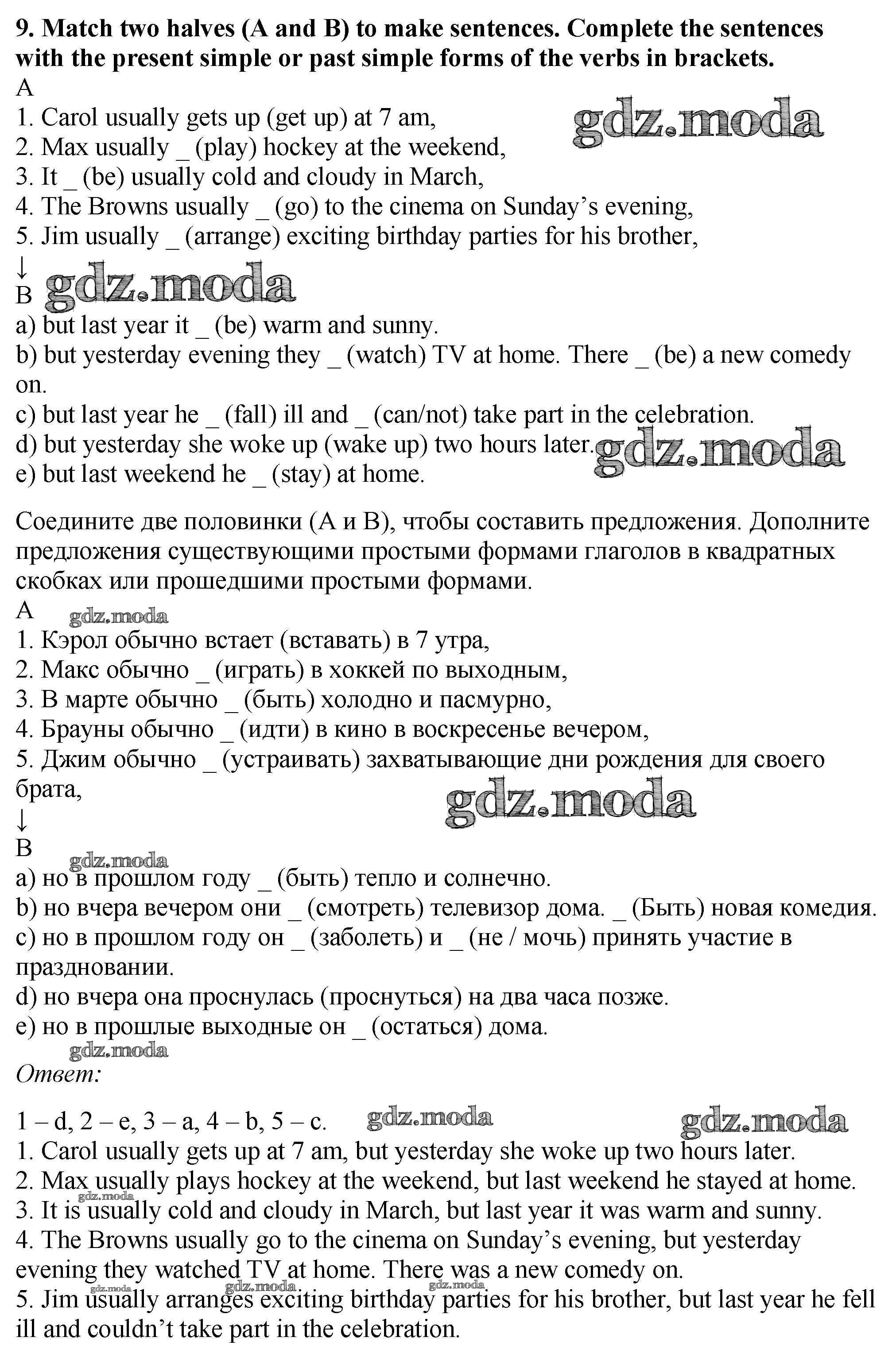 ОТВЕТ на задание № 9 Рабочая тетрадь по Английскому языку 5 класс Биболетова Enjoy English