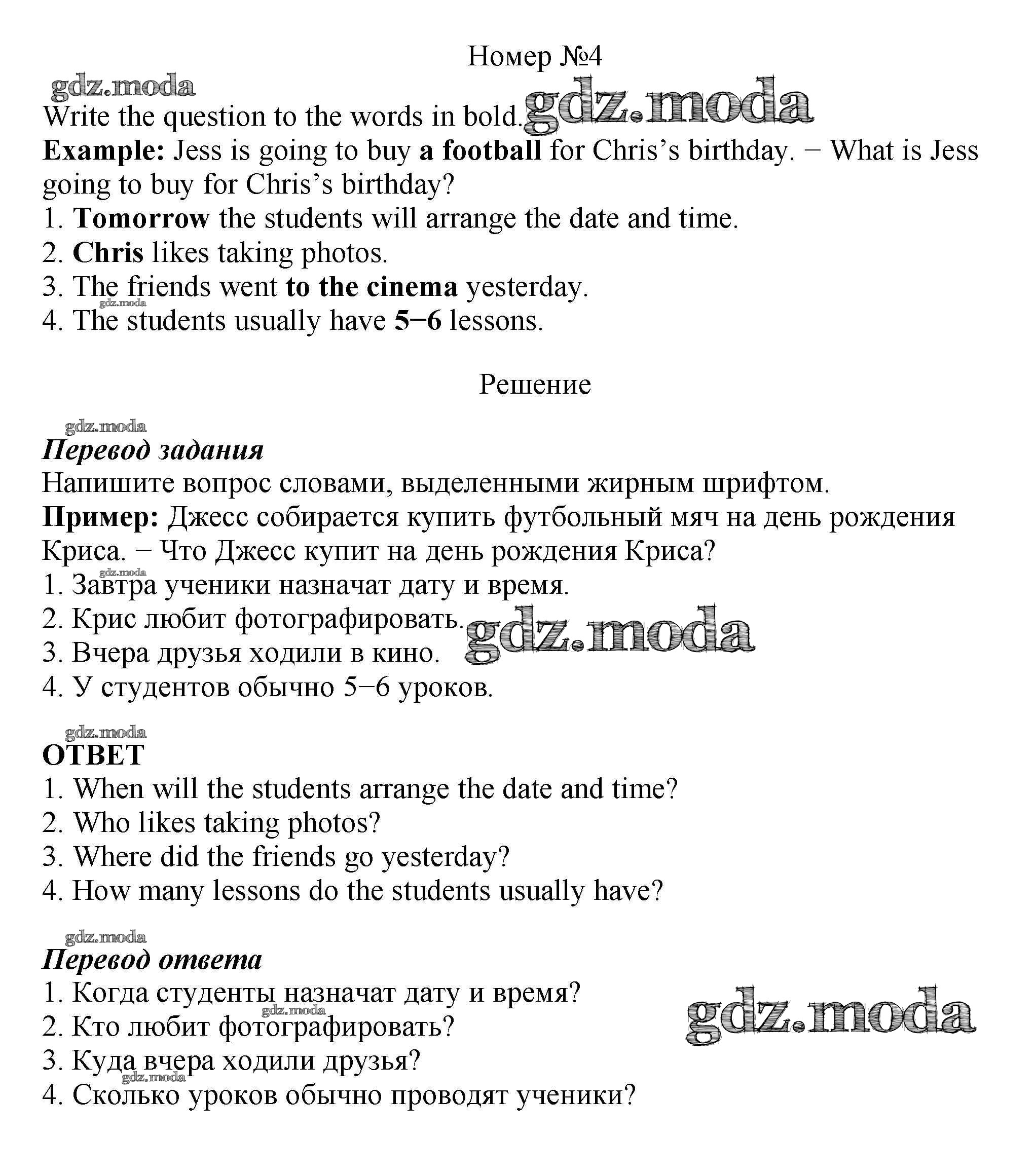 ОТВЕТ на задание № 4 Рабочая тетрадь по Английскому языку 5 класс Биболетова Enjoy English