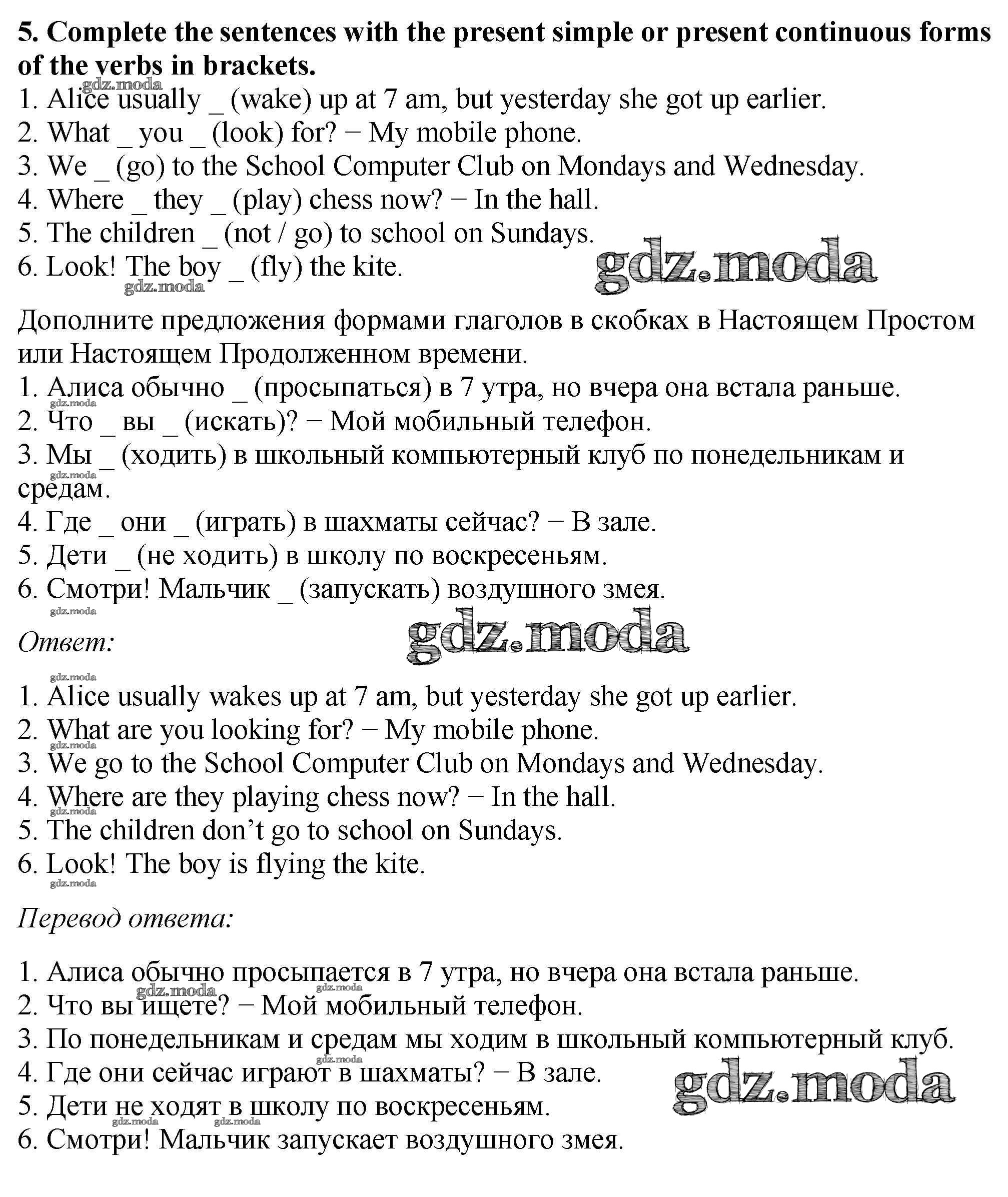 ОТВЕТ на задание № 5 Рабочая тетрадь по Английскому языку 5 класс Биболетова Enjoy English