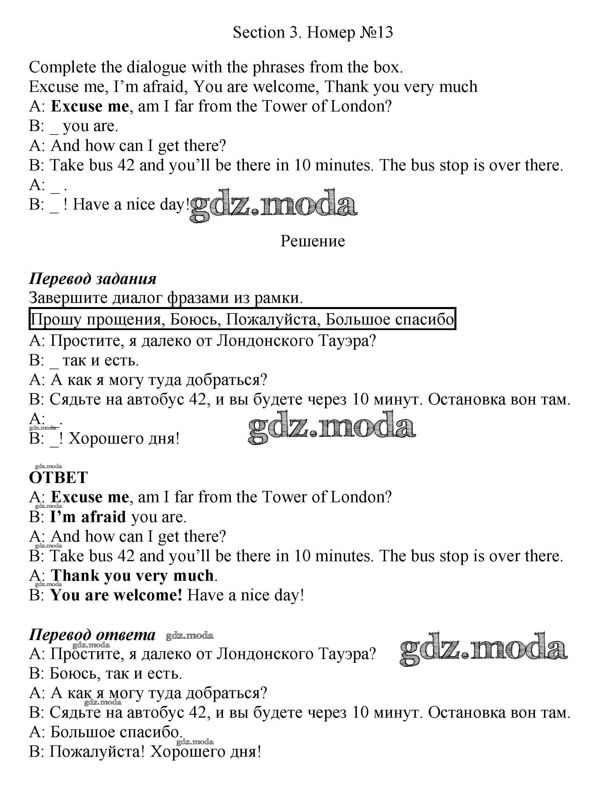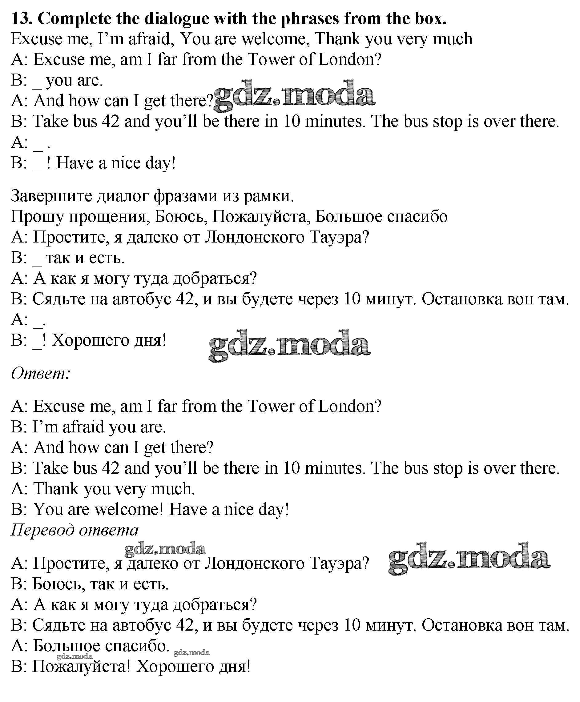 ОТВЕТ на задание № 13 Рабочая тетрадь по Английскому языку 5 класс Биболетова Enjoy English