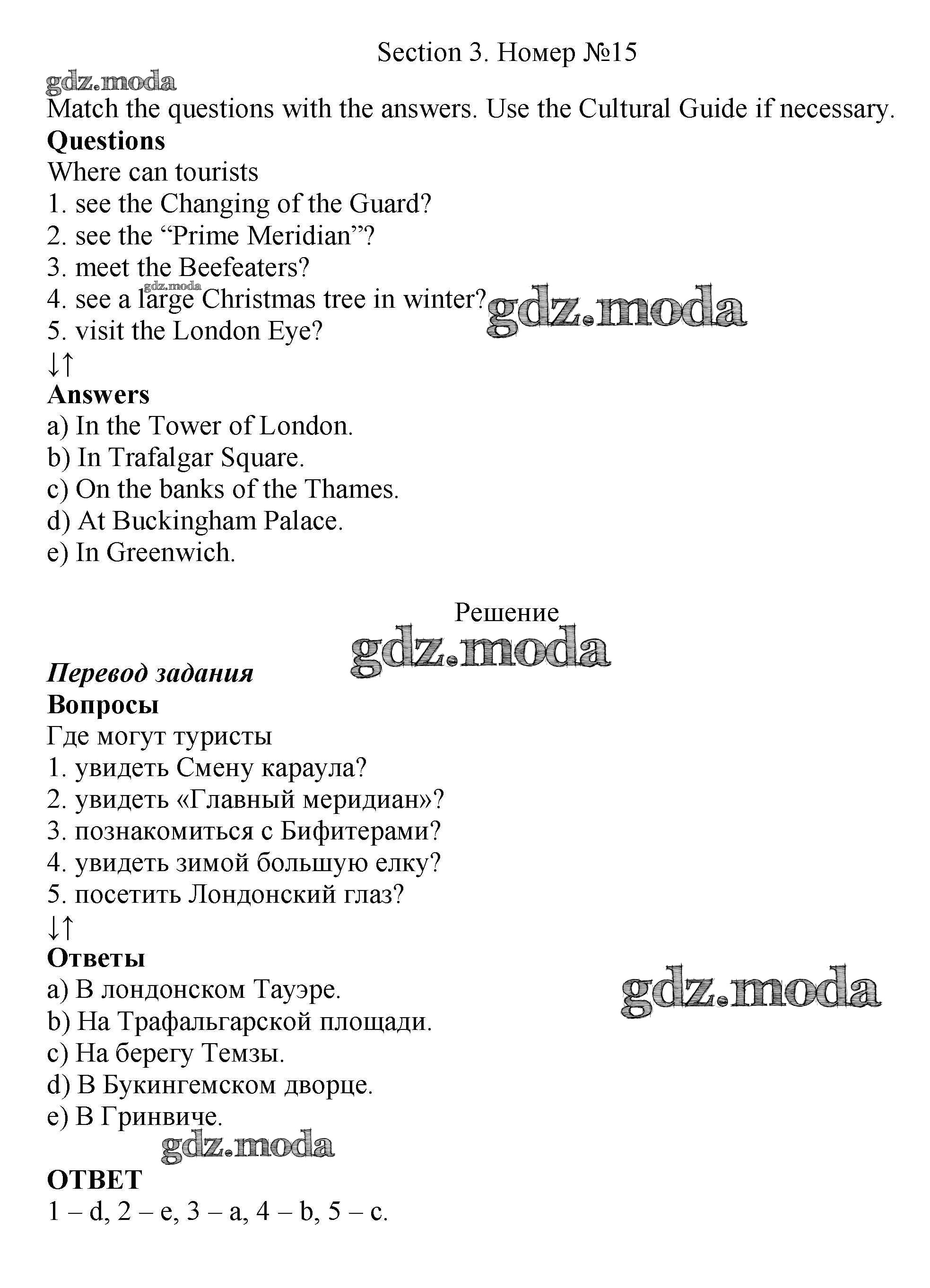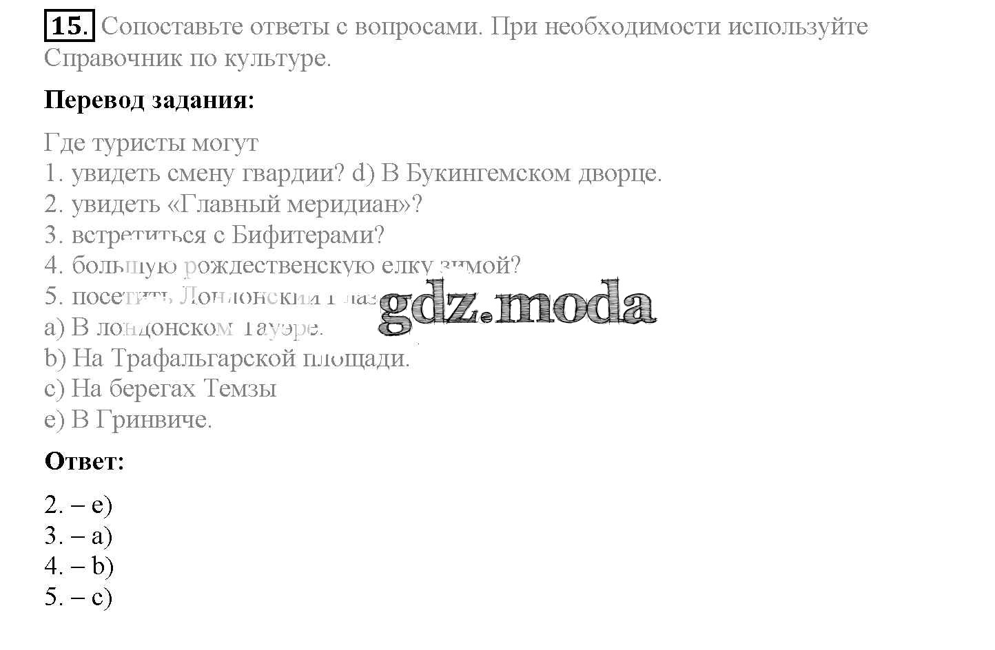 ОТВЕТ на задание № 15 Рабочая тетрадь по Английскому языку 5 класс Биболетова Enjoy English