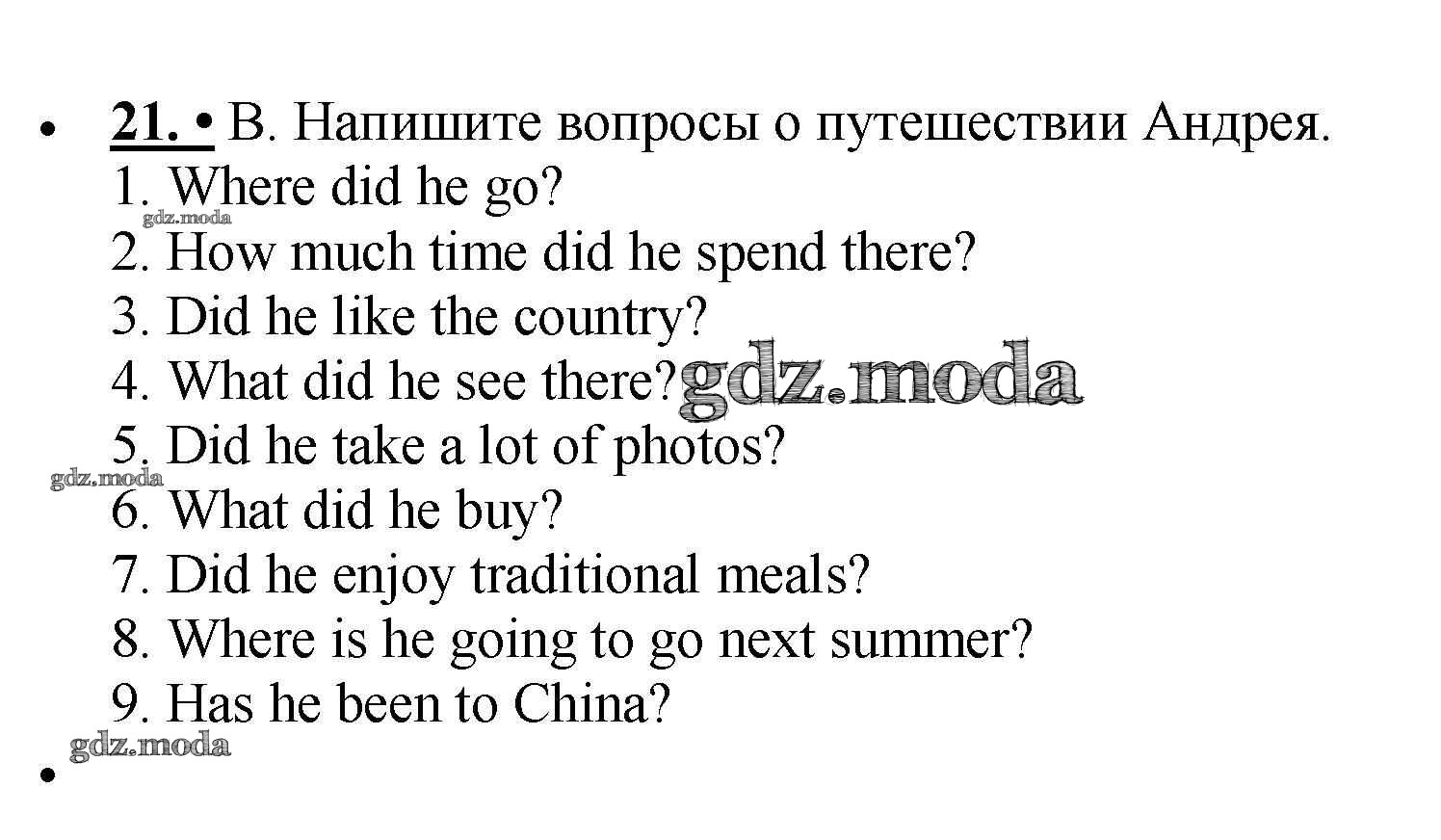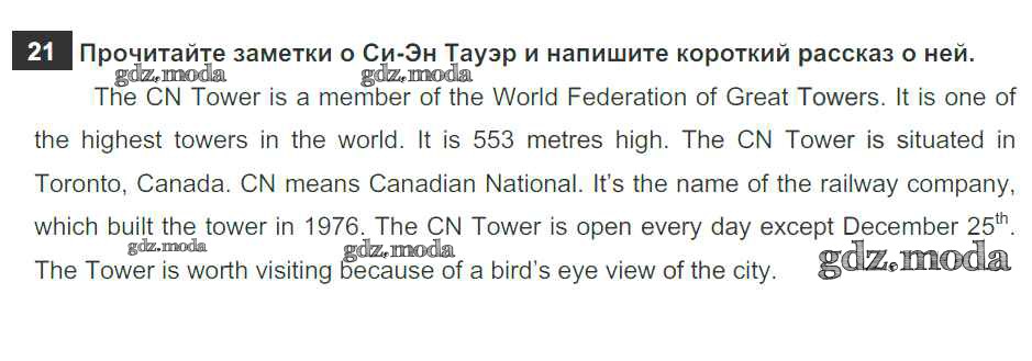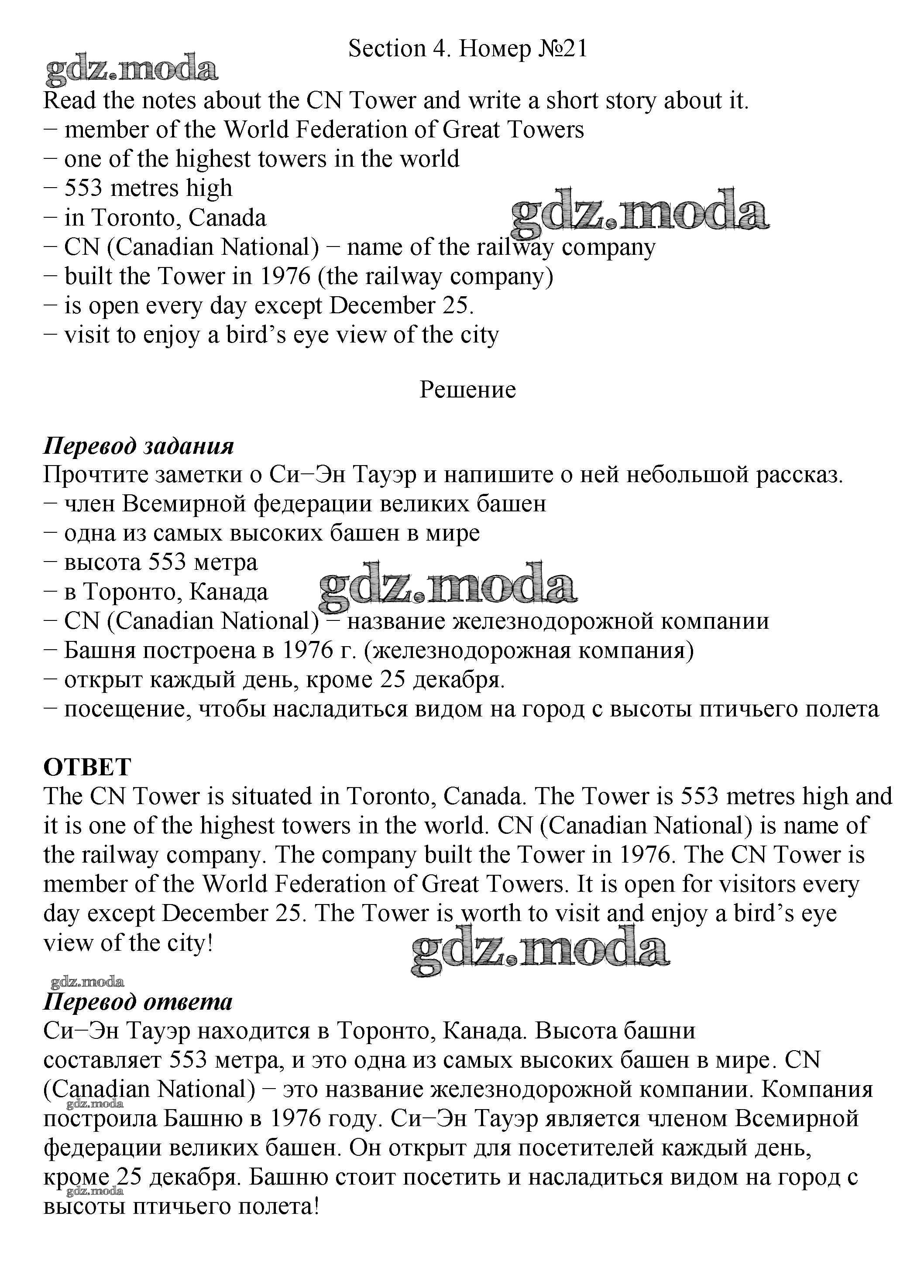 ОТВЕТ на задание № 21 Рабочая тетрадь по Английскому языку 5 класс Биболетова Enjoy English