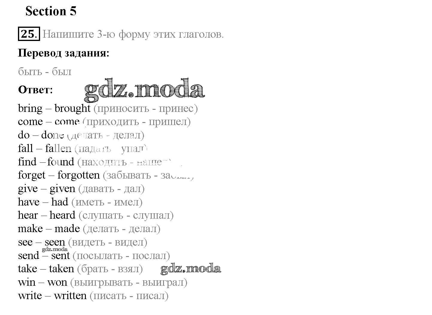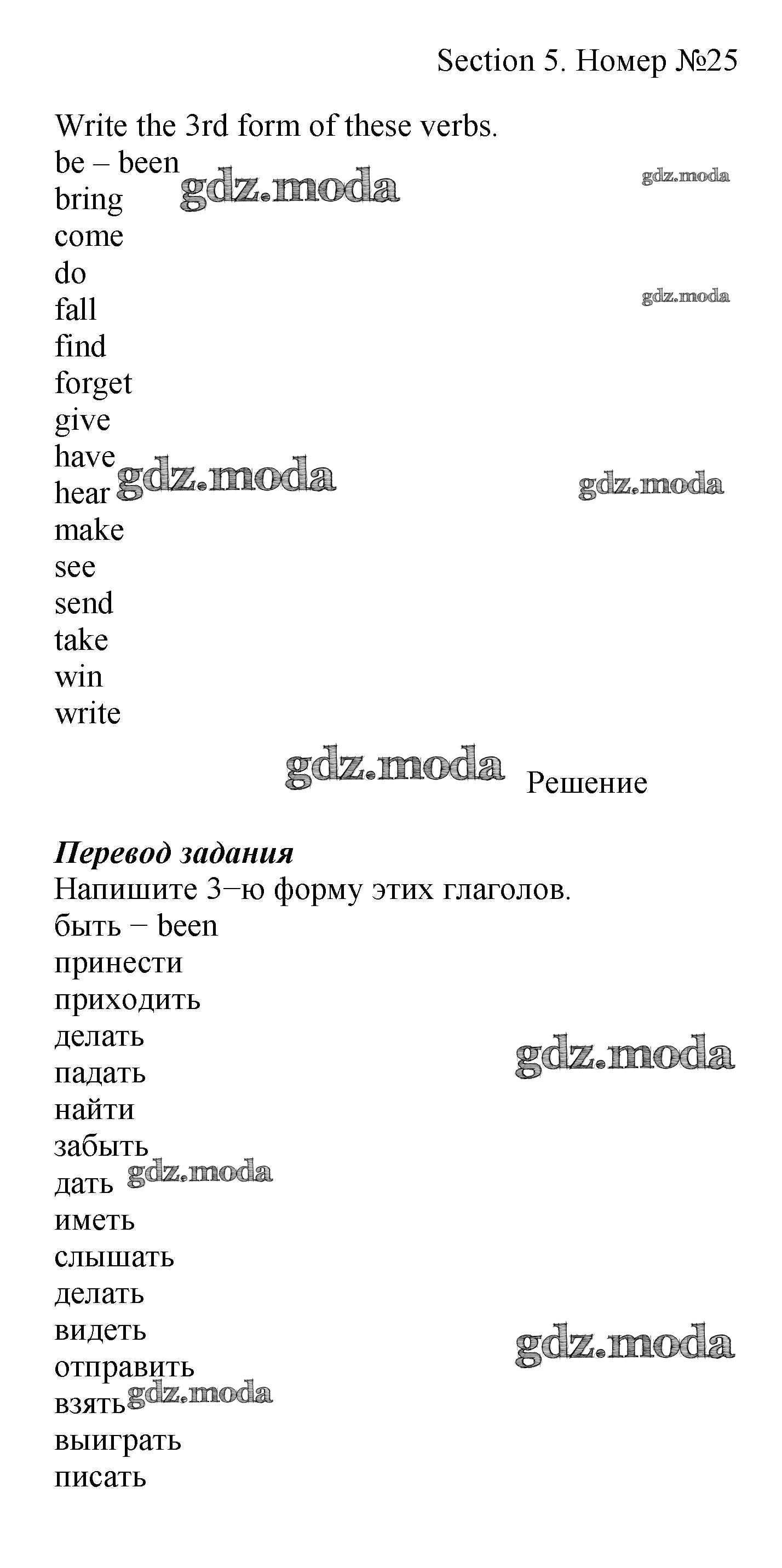 ОТВЕТ на задание № 25 Рабочая тетрадь по Английскому языку 5 класс Биболетова Enjoy English