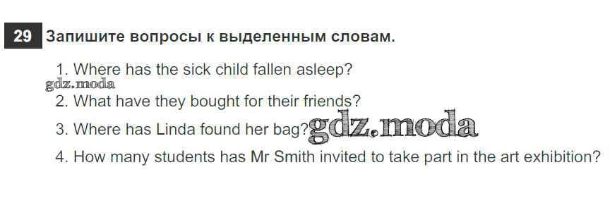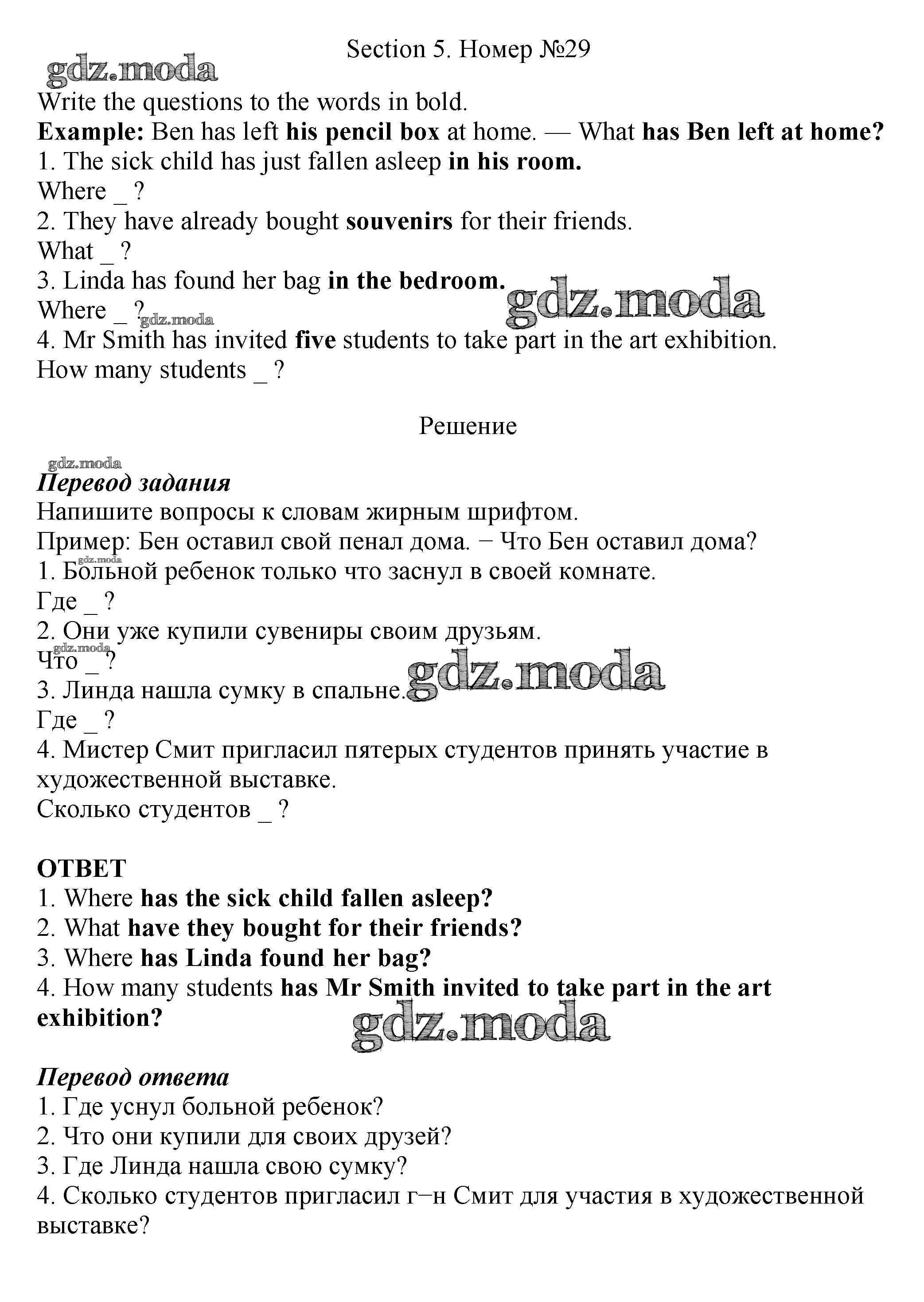 ОТВЕТ на задание № 29 Рабочая тетрадь по Английскому языку 5 класс Биболетова Enjoy English