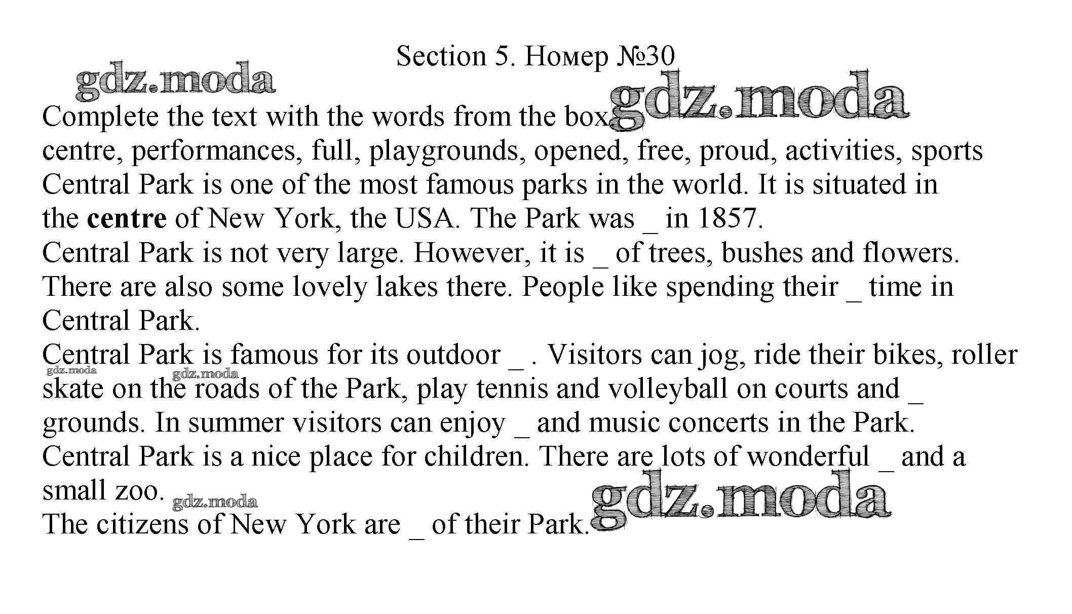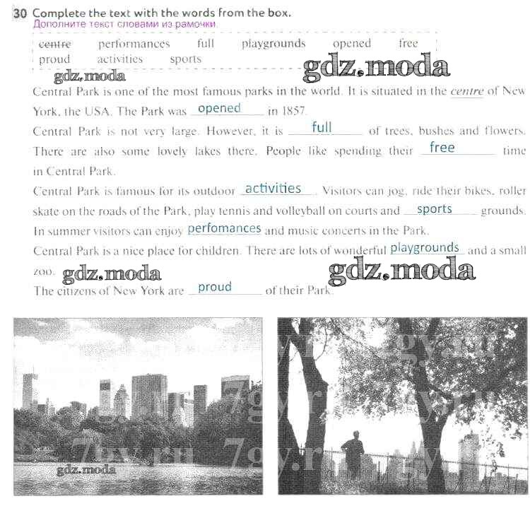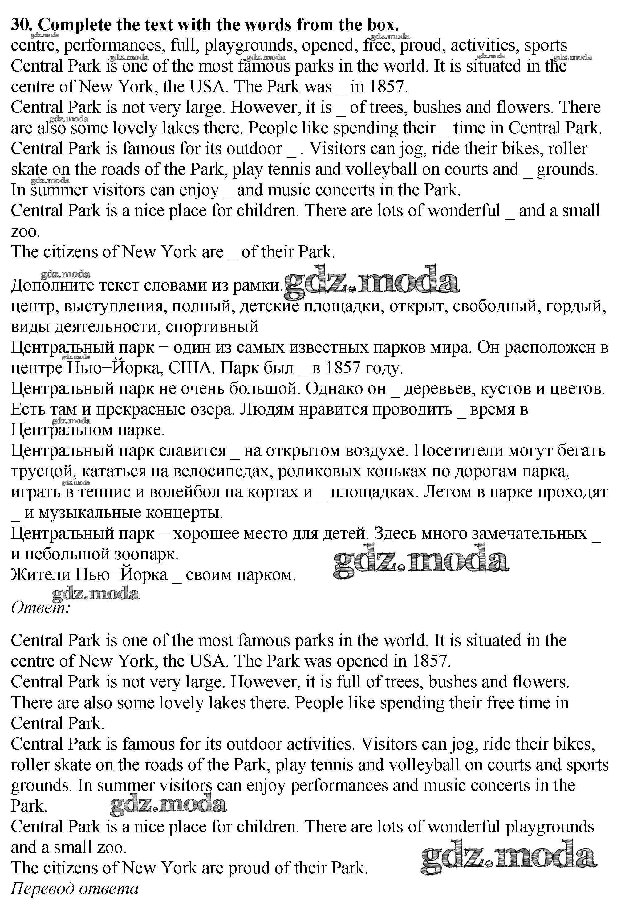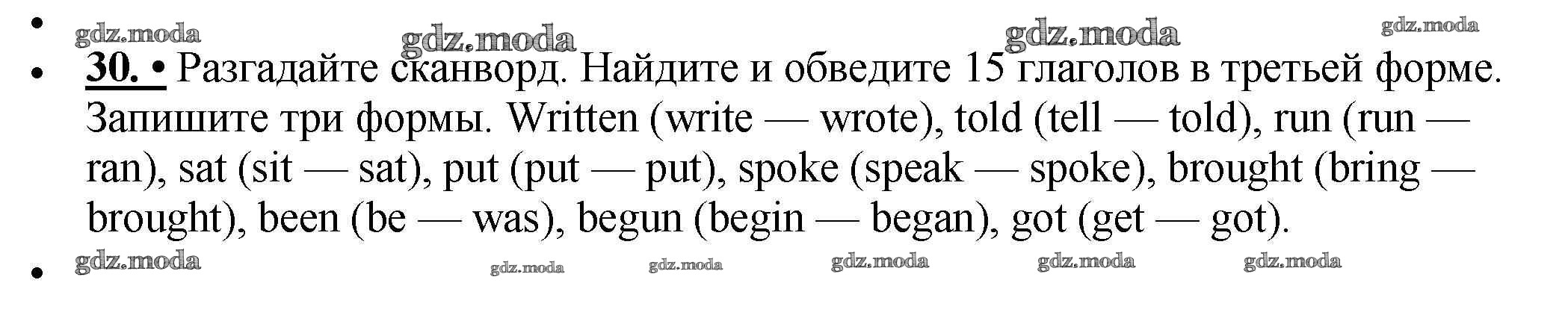 ОТВЕТ на задание № 30 Рабочая тетрадь по Английскому языку 5 класс Биболетова Enjoy English