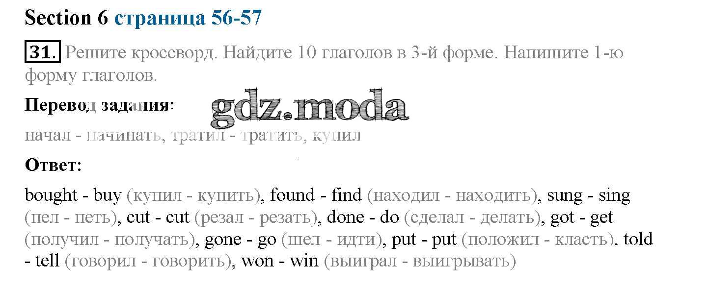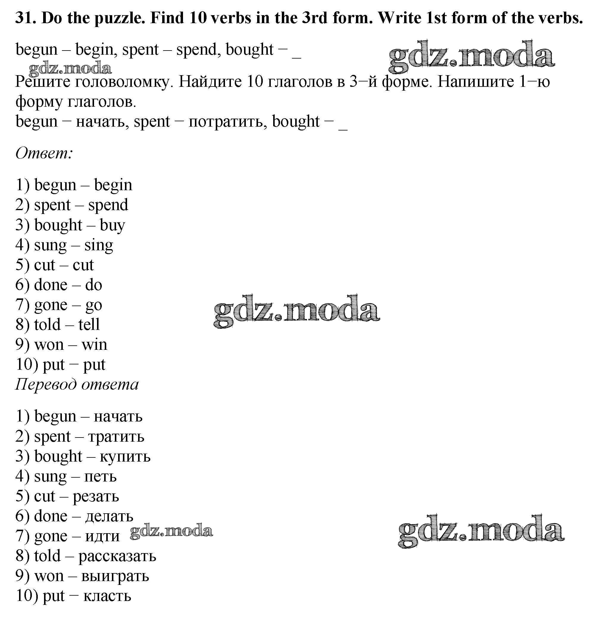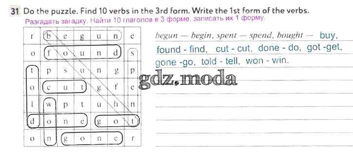 ОТВЕТ на задание № 31 Рабочая тетрадь по Английскому языку 5 класс Биболетова Enjoy English