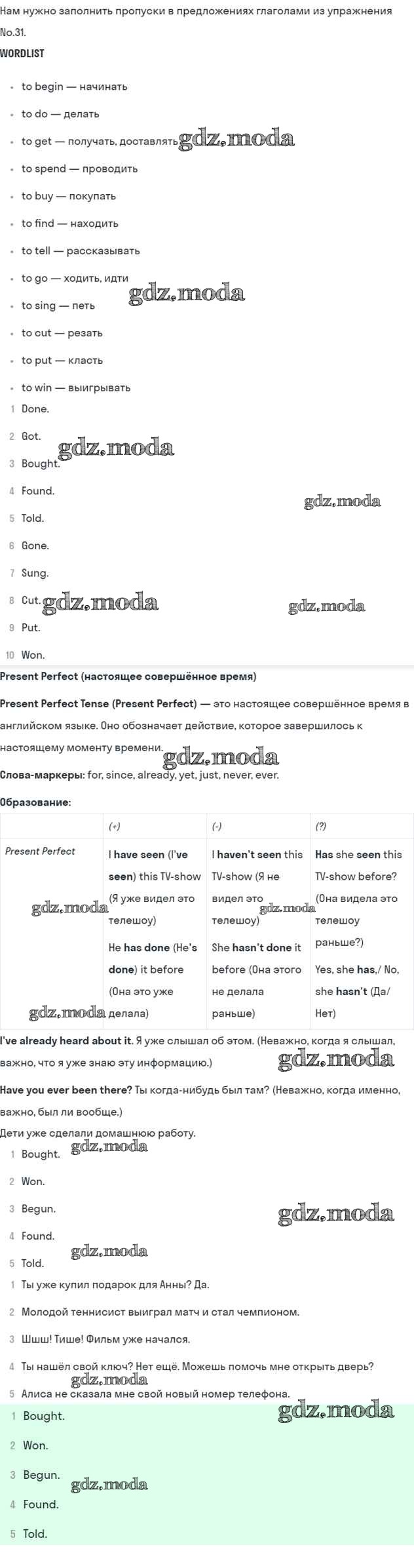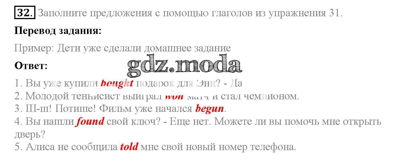 ОТВЕТ на задание № 32 Рабочая тетрадь по Английскому языку 5 класс Биболетова Enjoy English