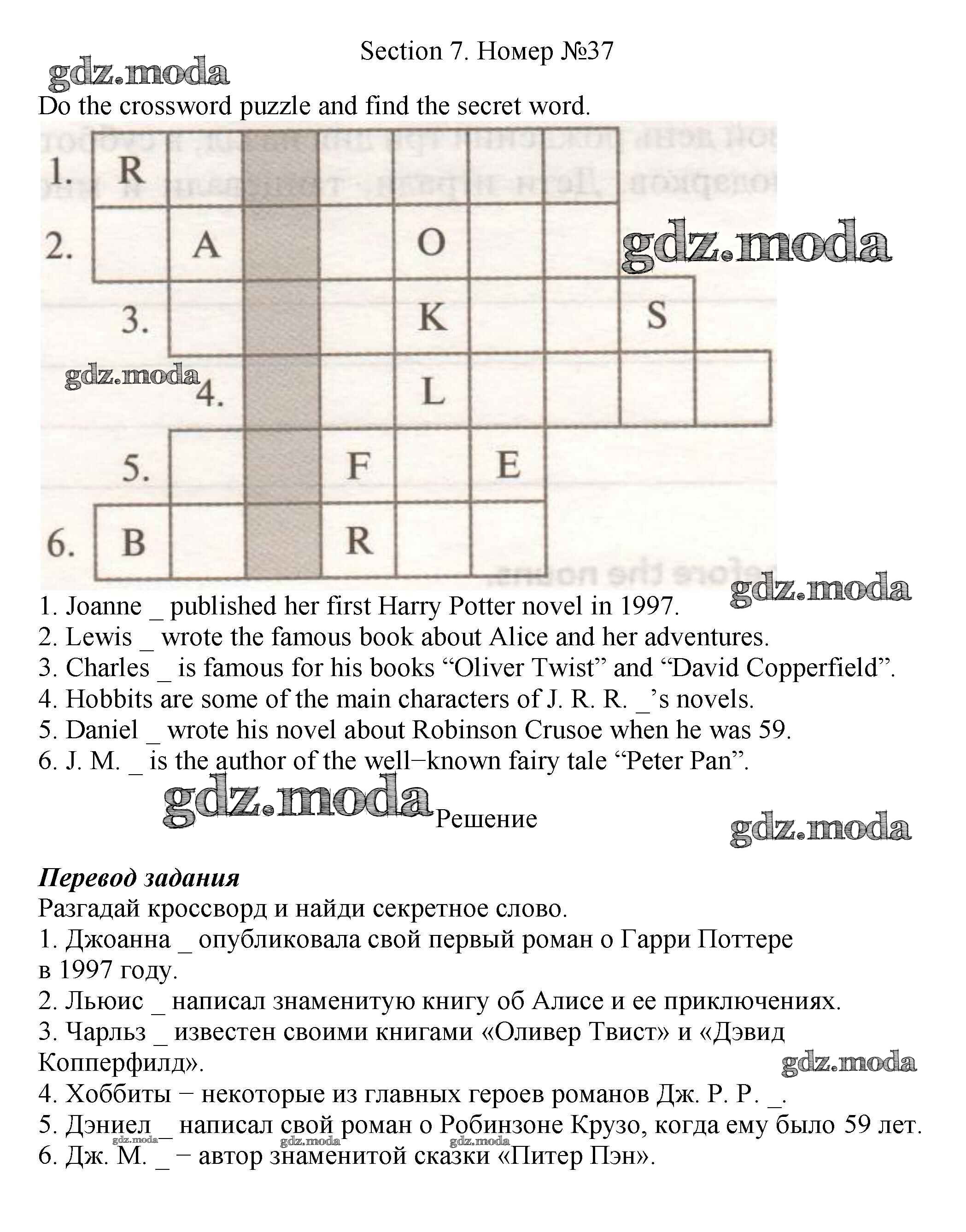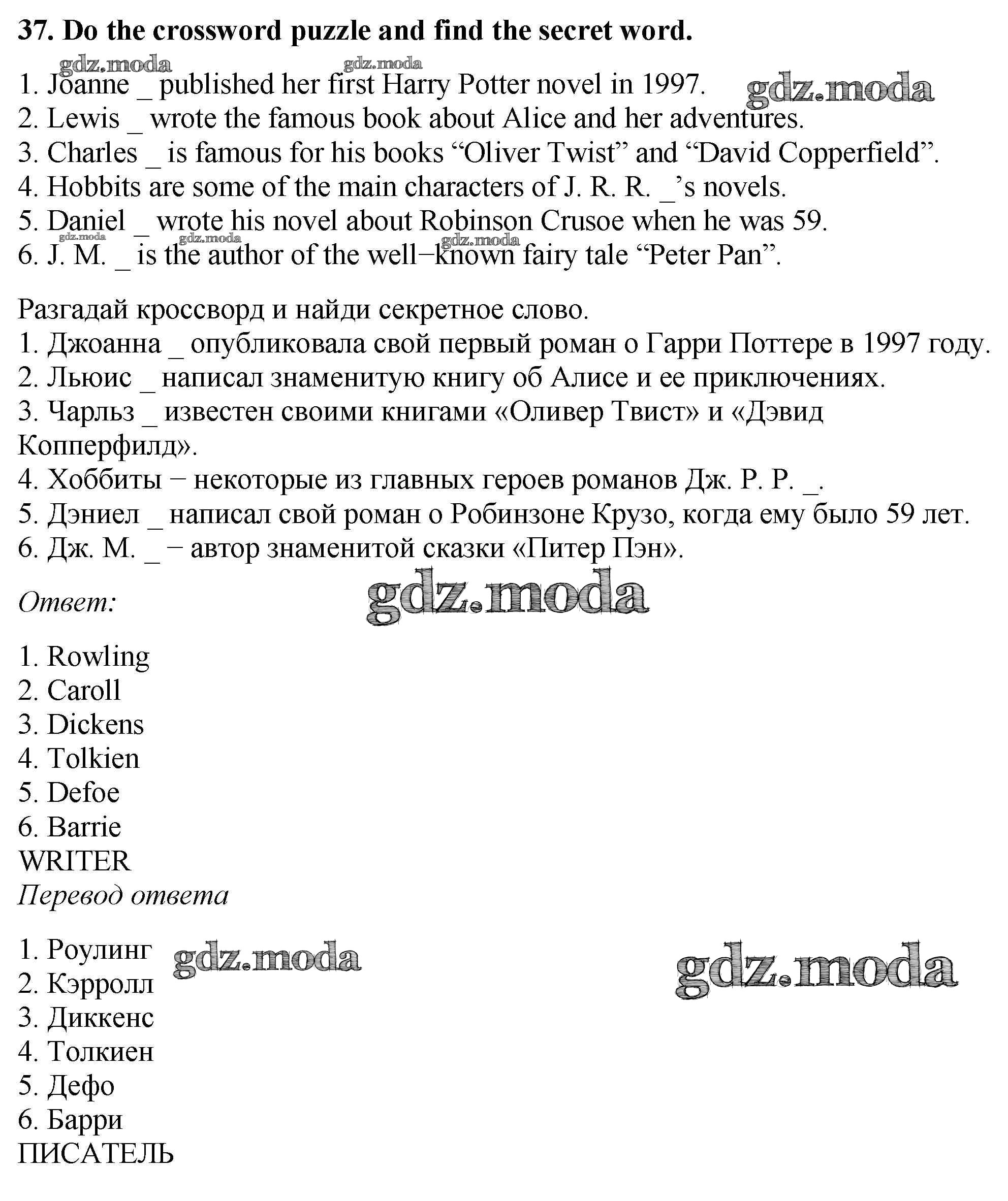 ОТВЕТ на задание № 37 Рабочая тетрадь по Английскому языку 5 класс Биболетова Enjoy English
