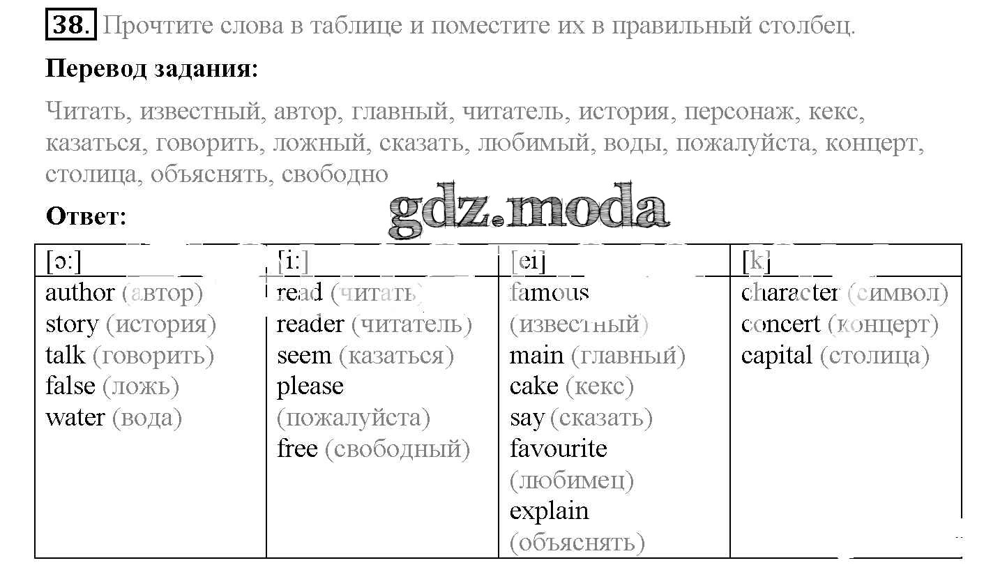 ОТВЕТ на задание № 38 Рабочая тетрадь по Английскому языку 5 класс Биболетова Enjoy English