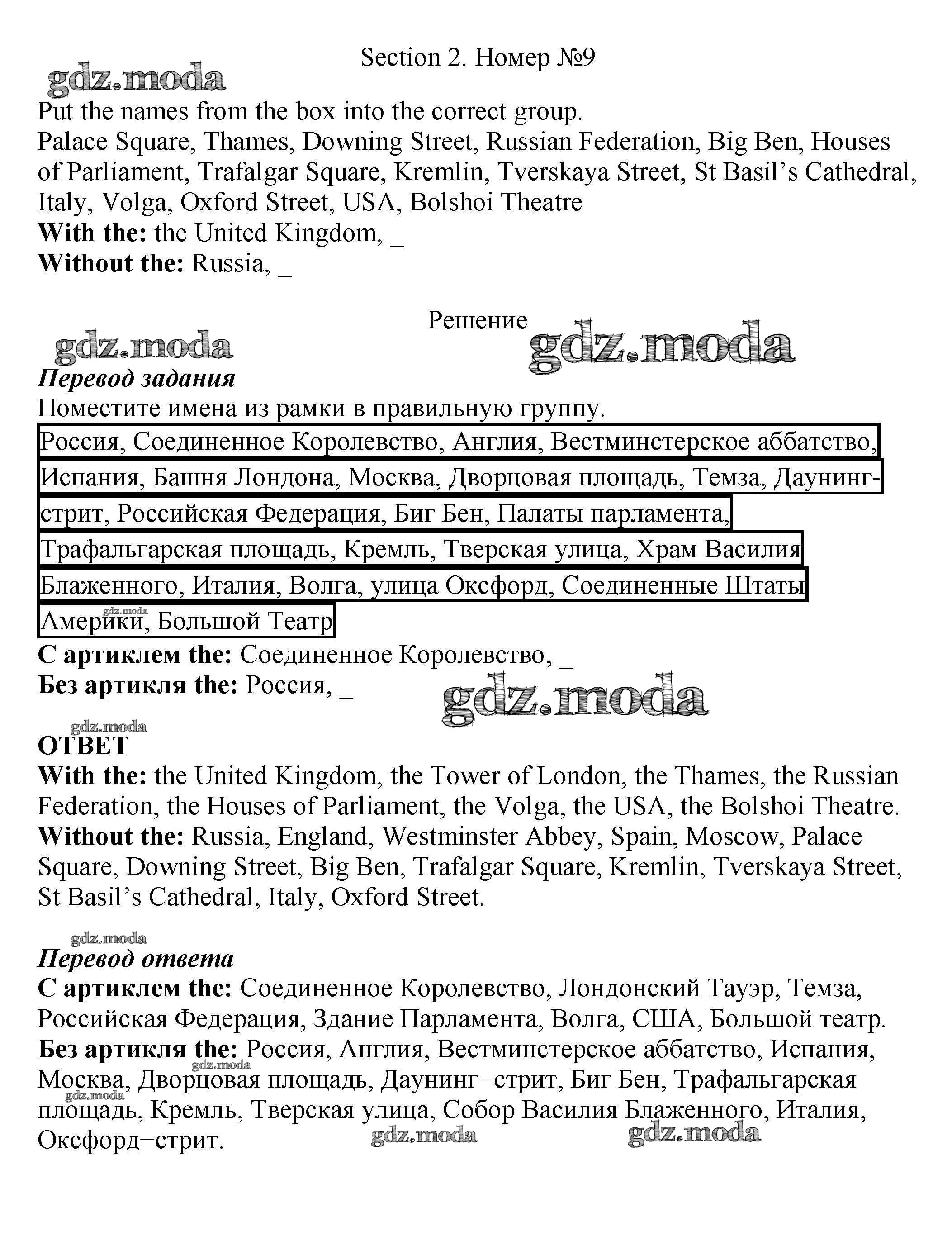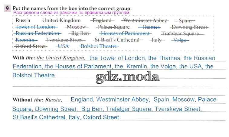 ОТВЕТ на задание № 9 Рабочая тетрадь по Английскому языку 5 класс Биболетова Enjoy English