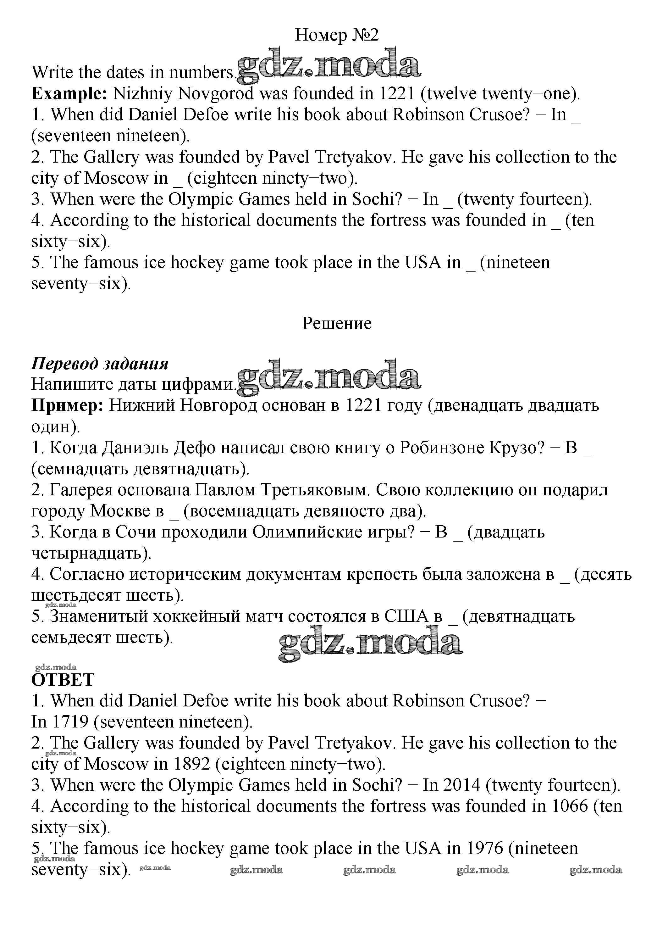 ОТВЕТ на задание № 2 Рабочая тетрадь по Английскому языку 5 класс Биболетова Enjoy English