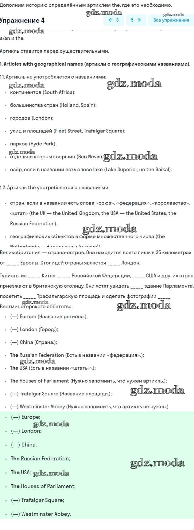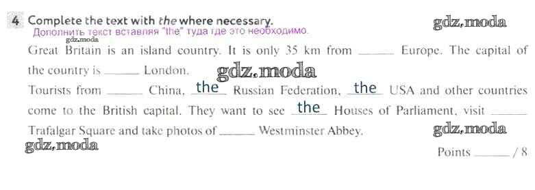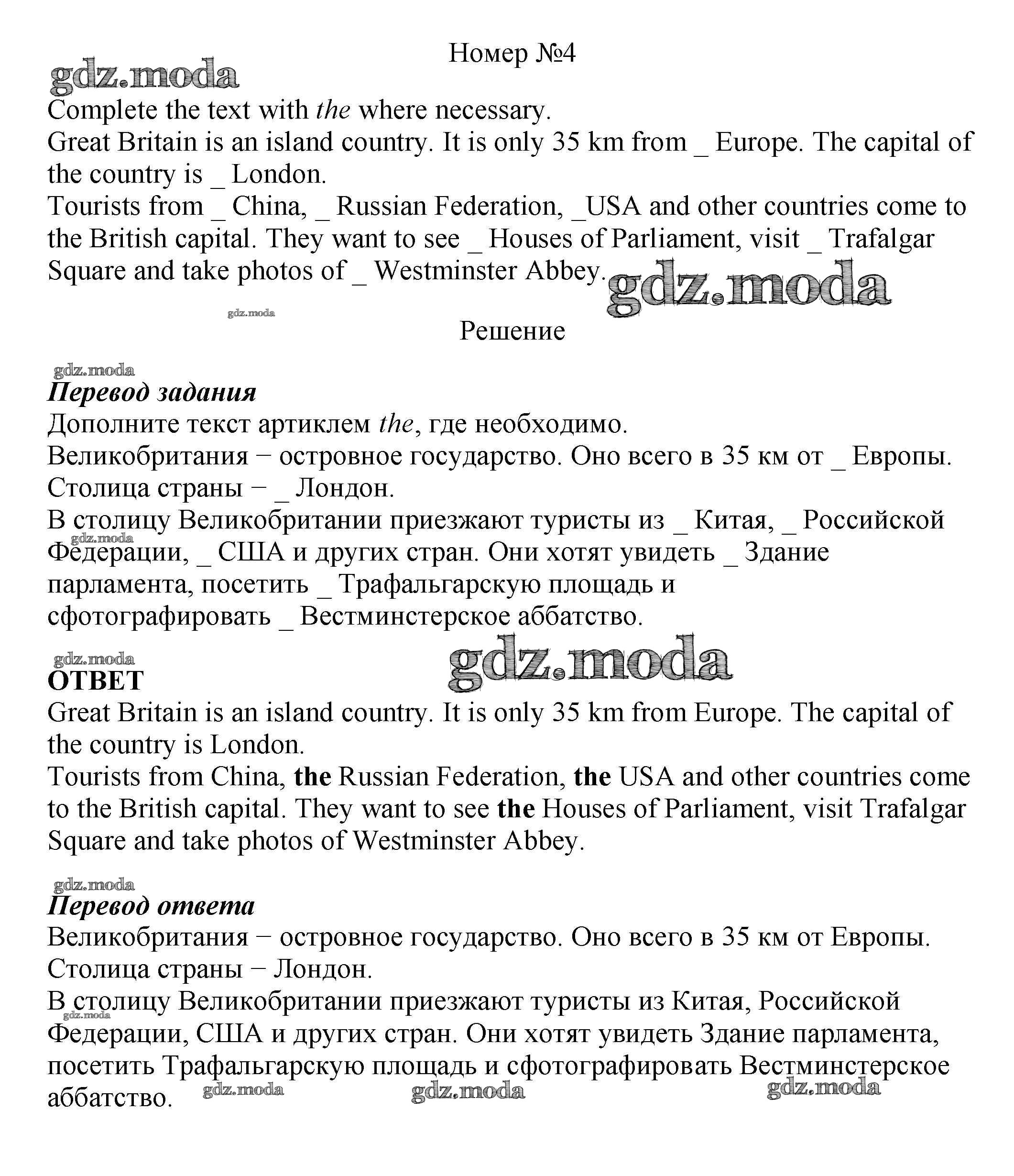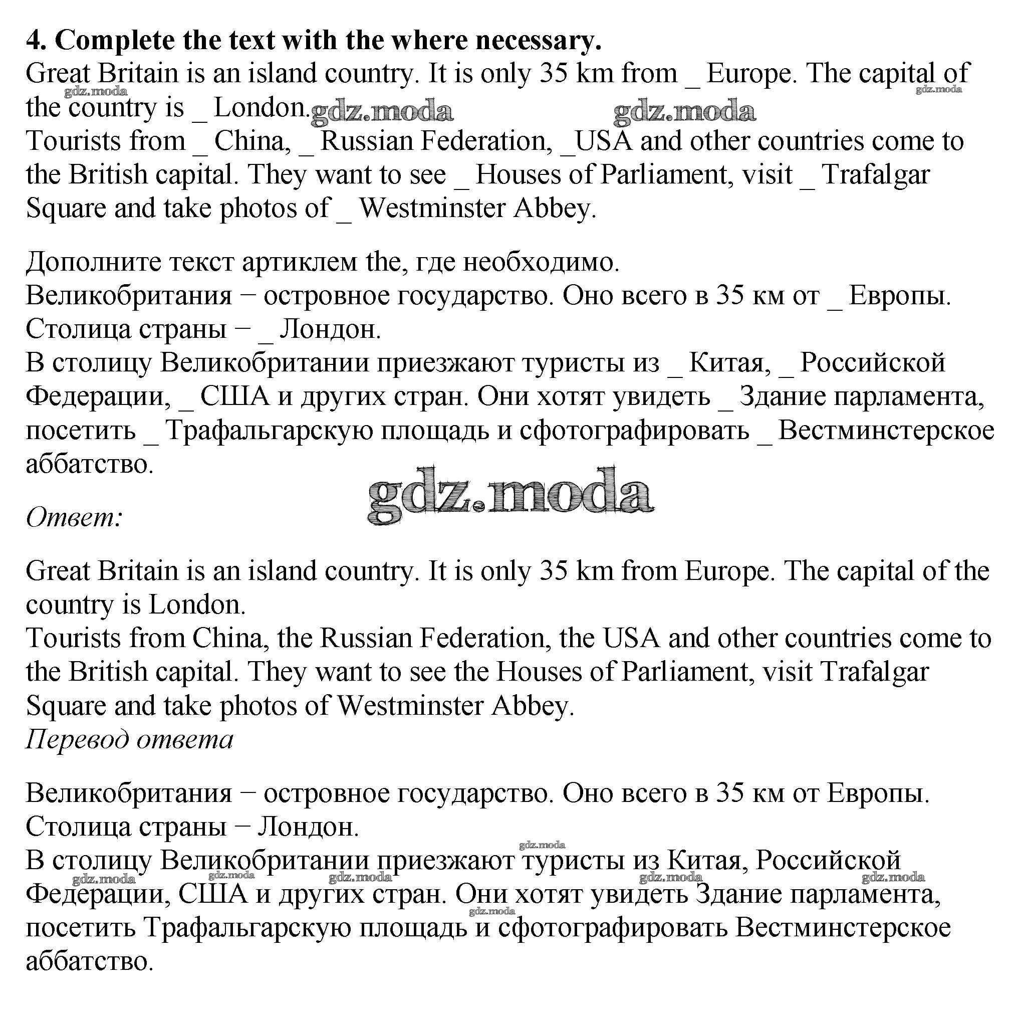 ОТВЕТ на задание № 4 Рабочая тетрадь по Английскому языку 5 класс Биболетова Enjoy English