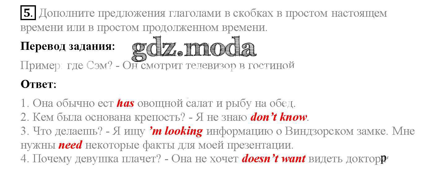 ОТВЕТ на задание № 5 Рабочая тетрадь по Английскому языку 5 класс Биболетова Enjoy English