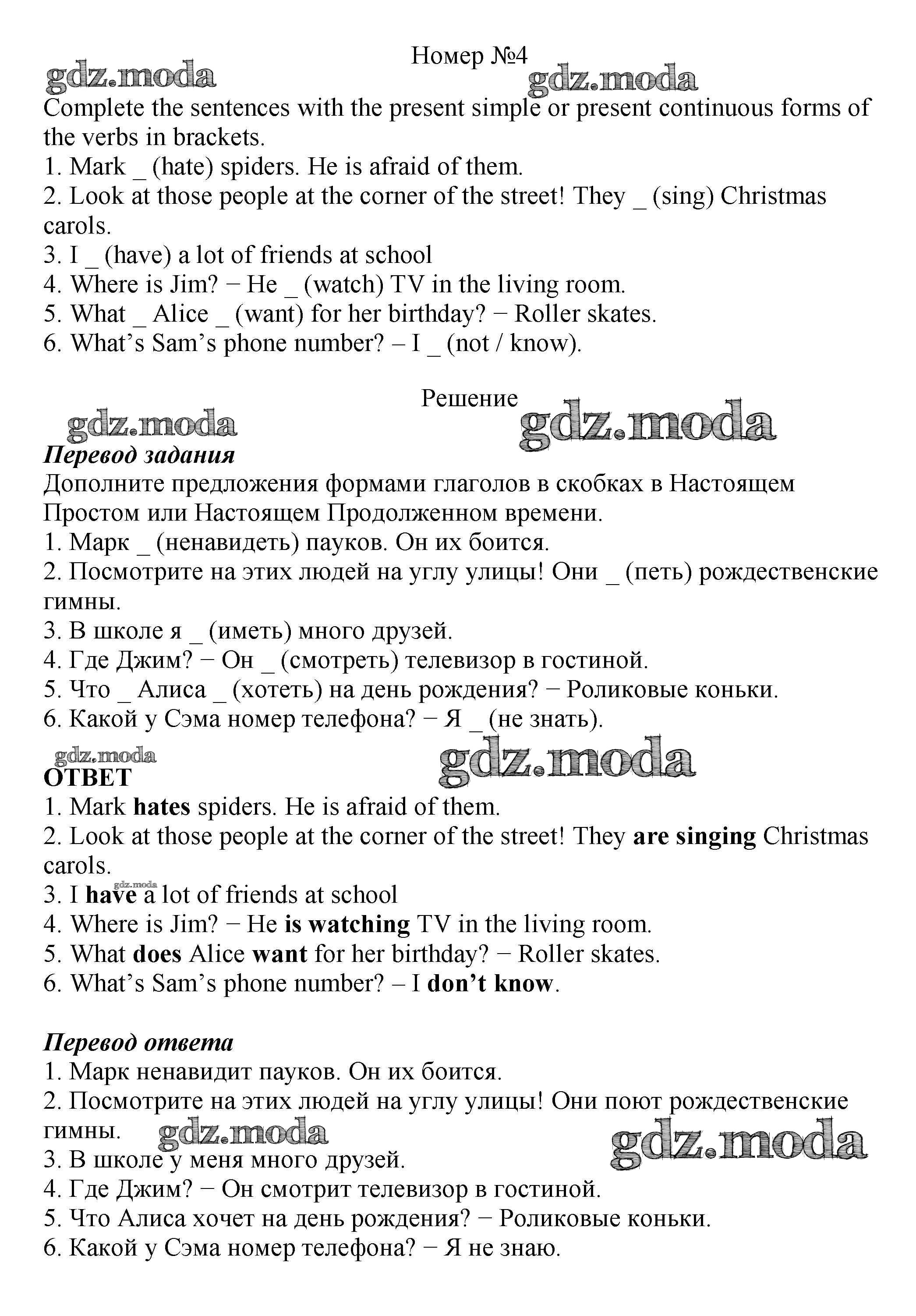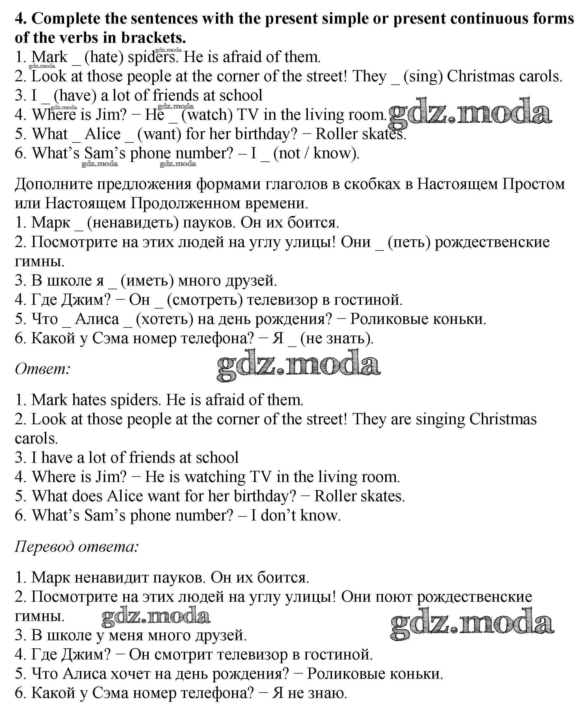 ОТВЕТ на задание № 4 Рабочая тетрадь по Английскому языку 5 класс Биболетова Enjoy English